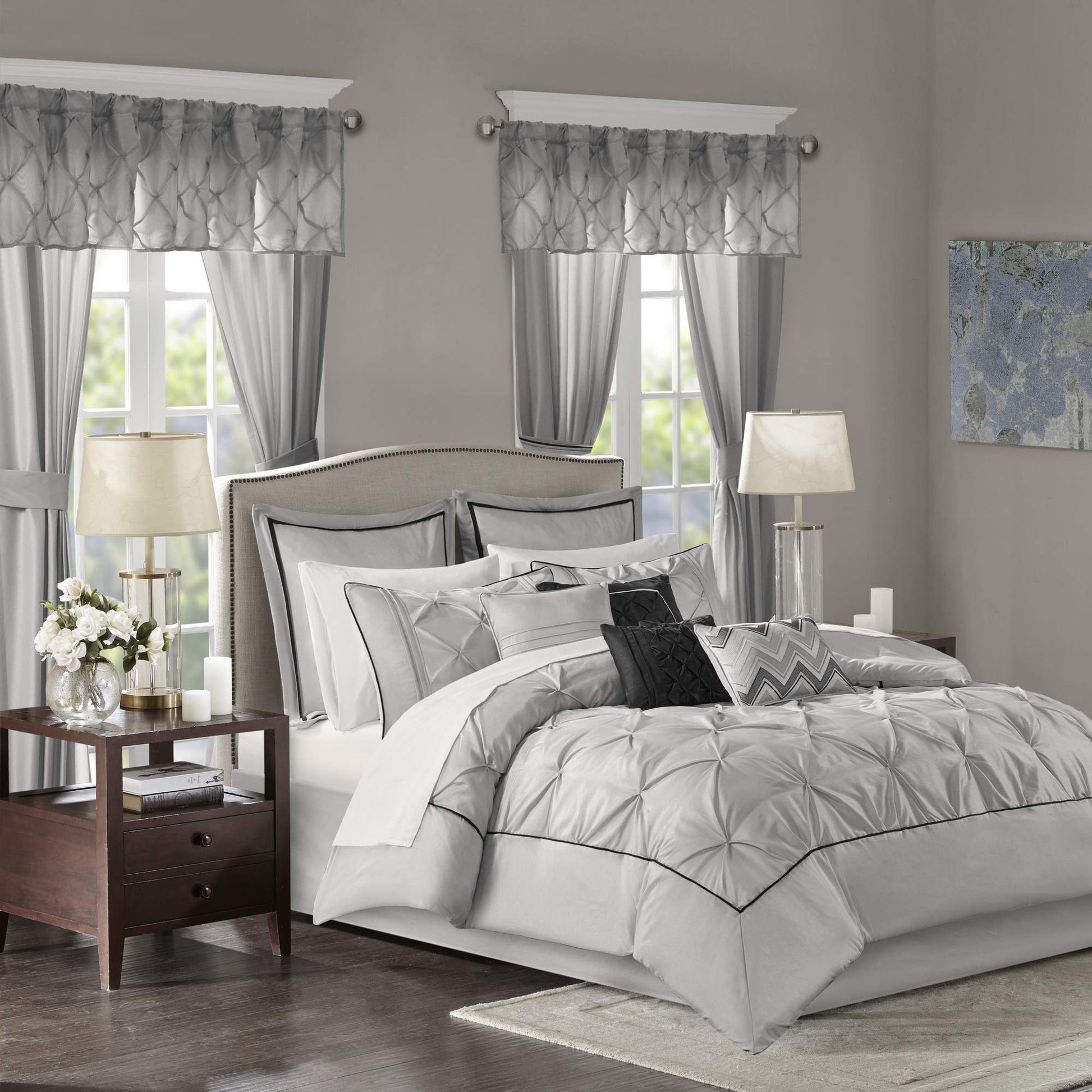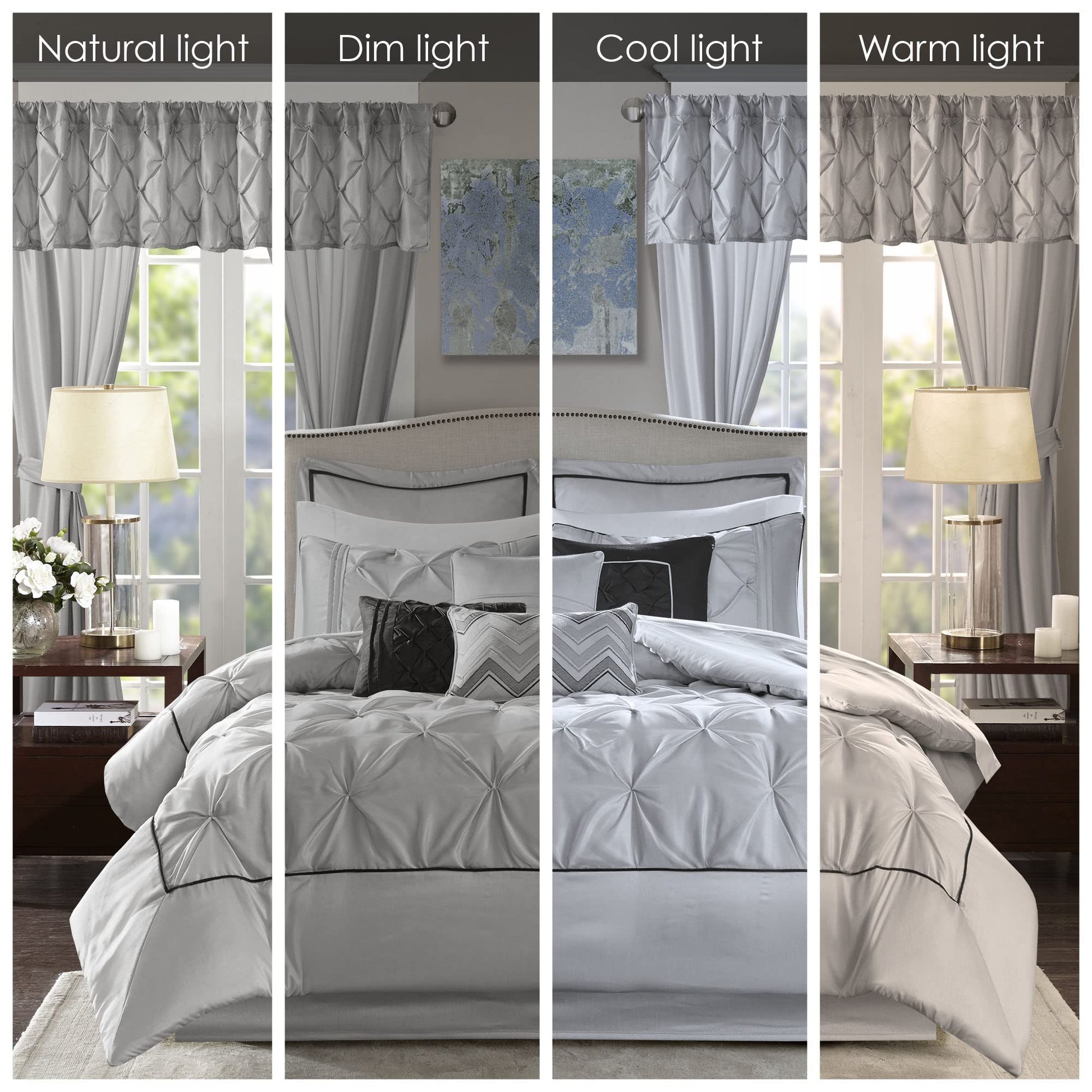 Essentials Room in a Bag Faux Silk Comforter Set Luxe Diamond Tufting All Season Bedding, Matching Curtains, Decorative Pillows, Grey King(104"x92") 24 Piece