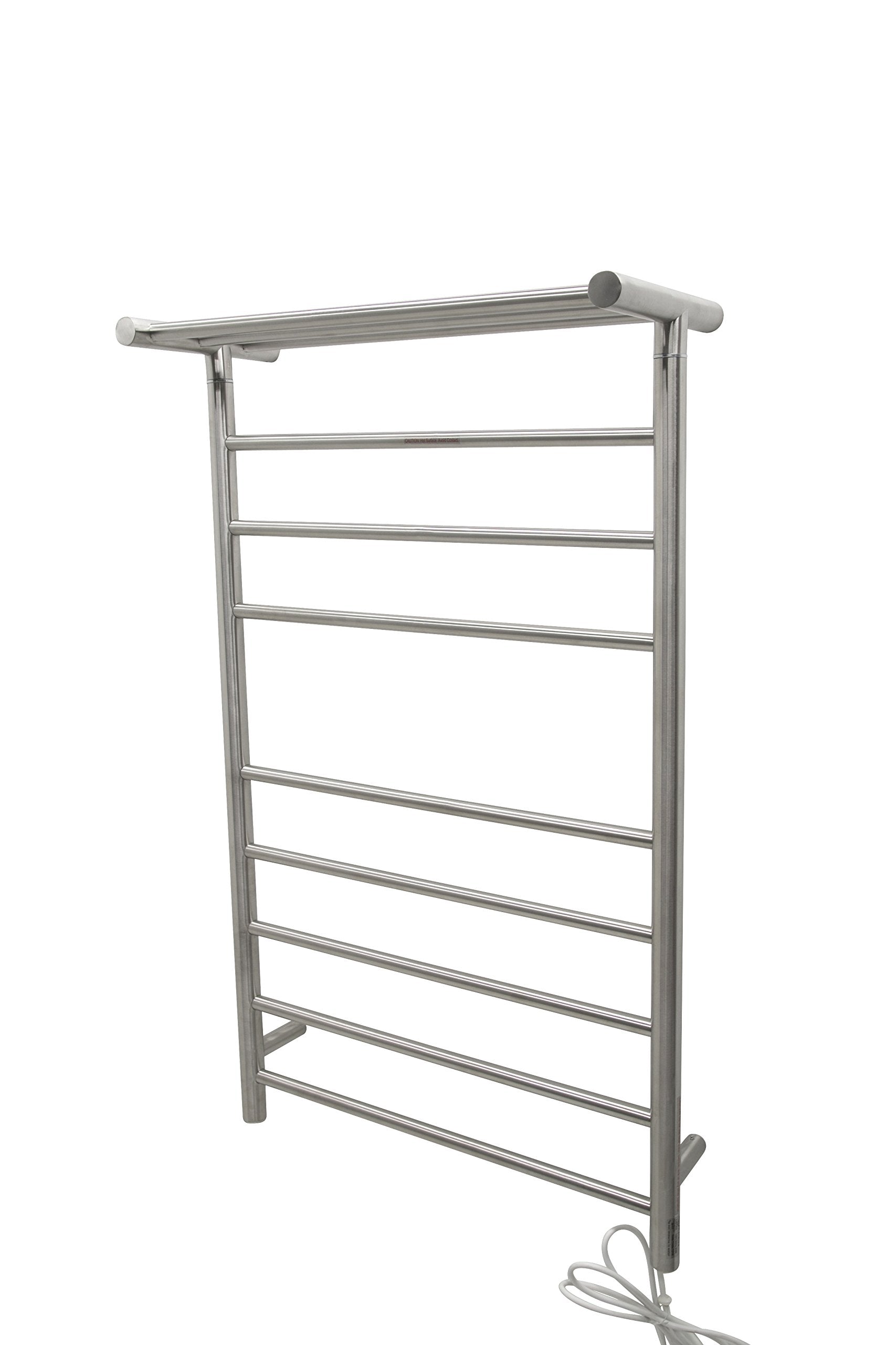Eve 8 Bar Wall Mounted Towel Warmer with Top Shelf in Brushed Nickel Energy Efficient 93W Electric Plug in Heated Towel Rack for Bathroom Steel Towel Heater Rail On/Off Switch TW-AZ012BN