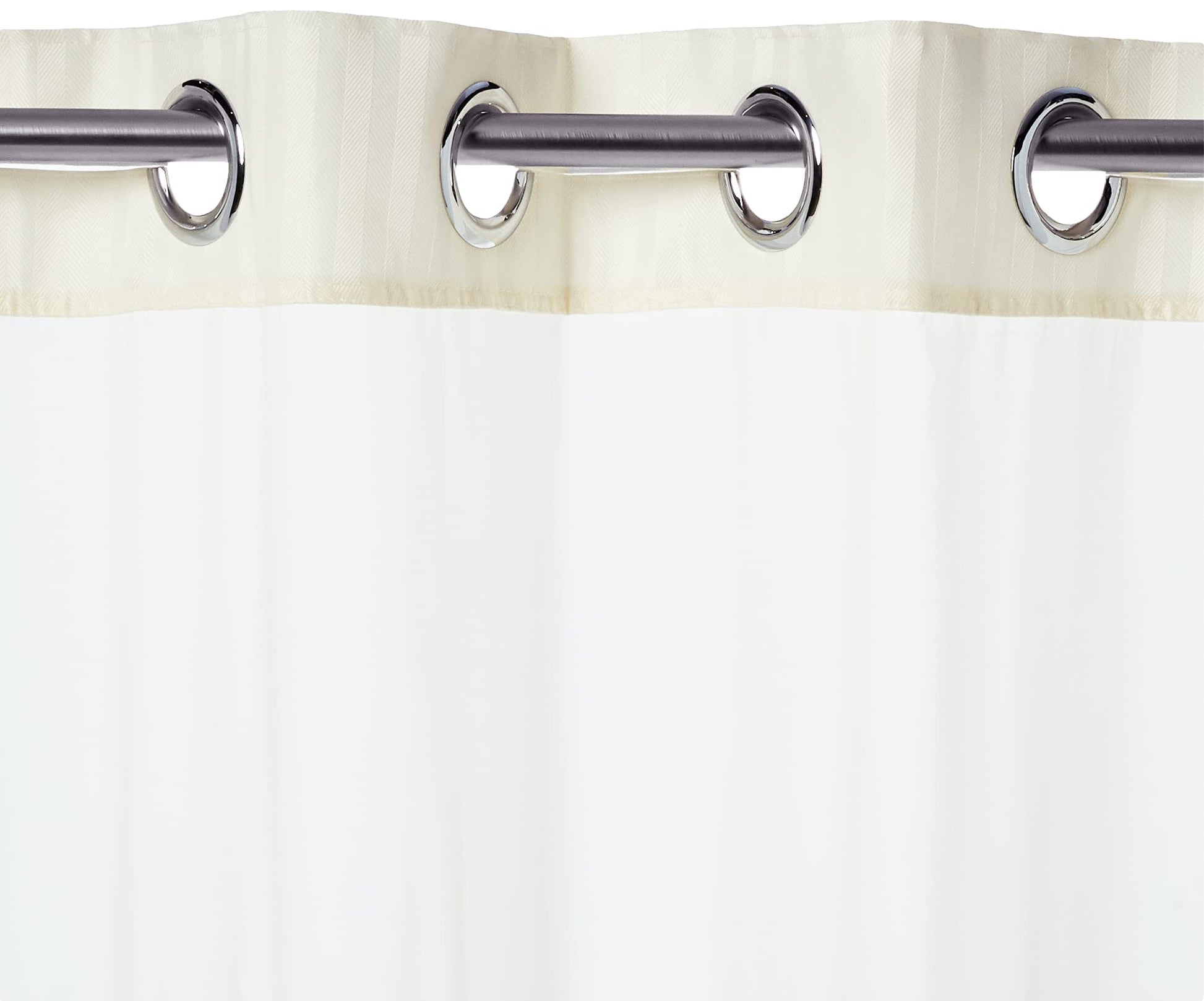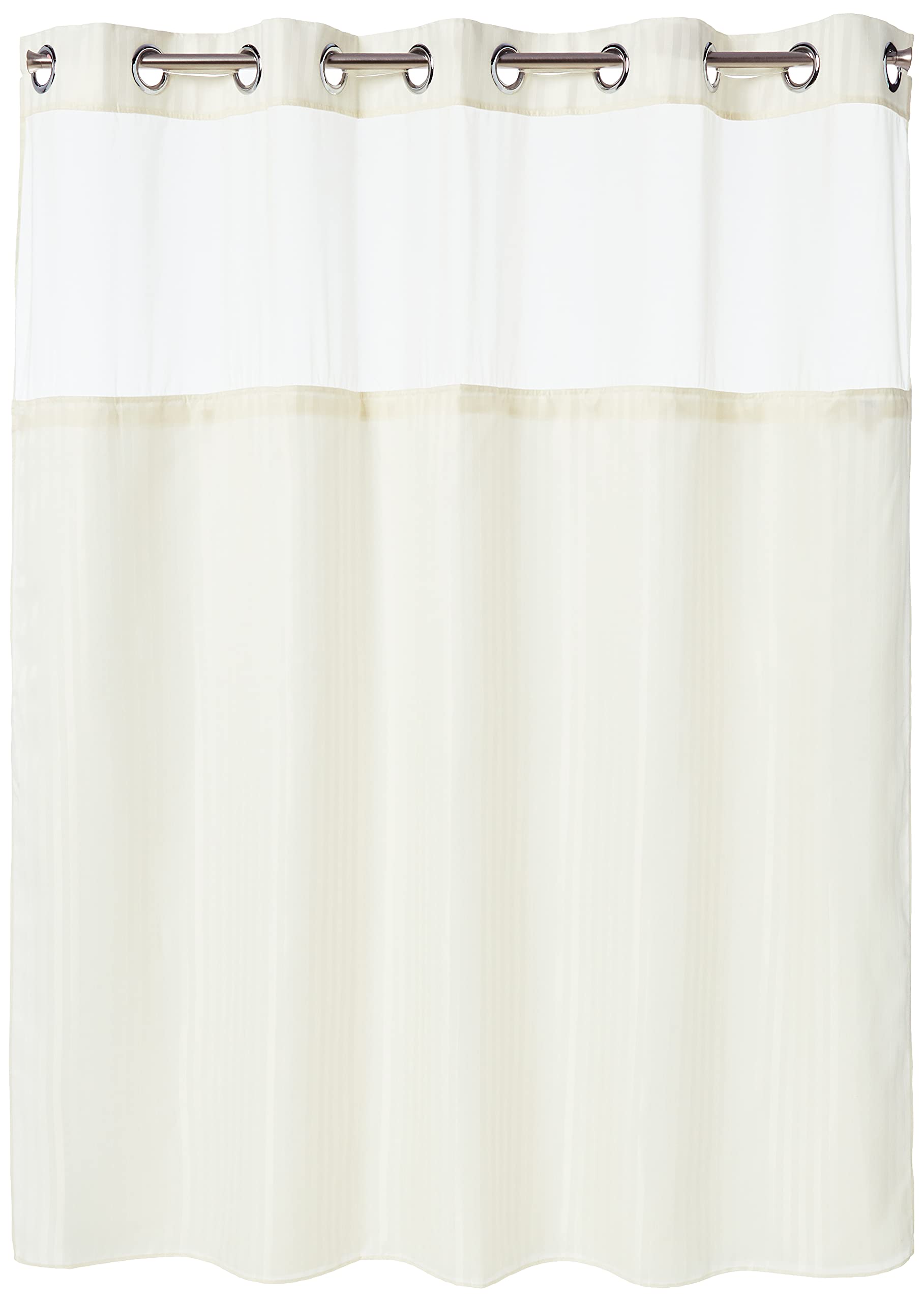 Fabric 3-in-1 Shower Curtain Set with PEVA Snap-In Liner and Window, 71x74 In, Beige
