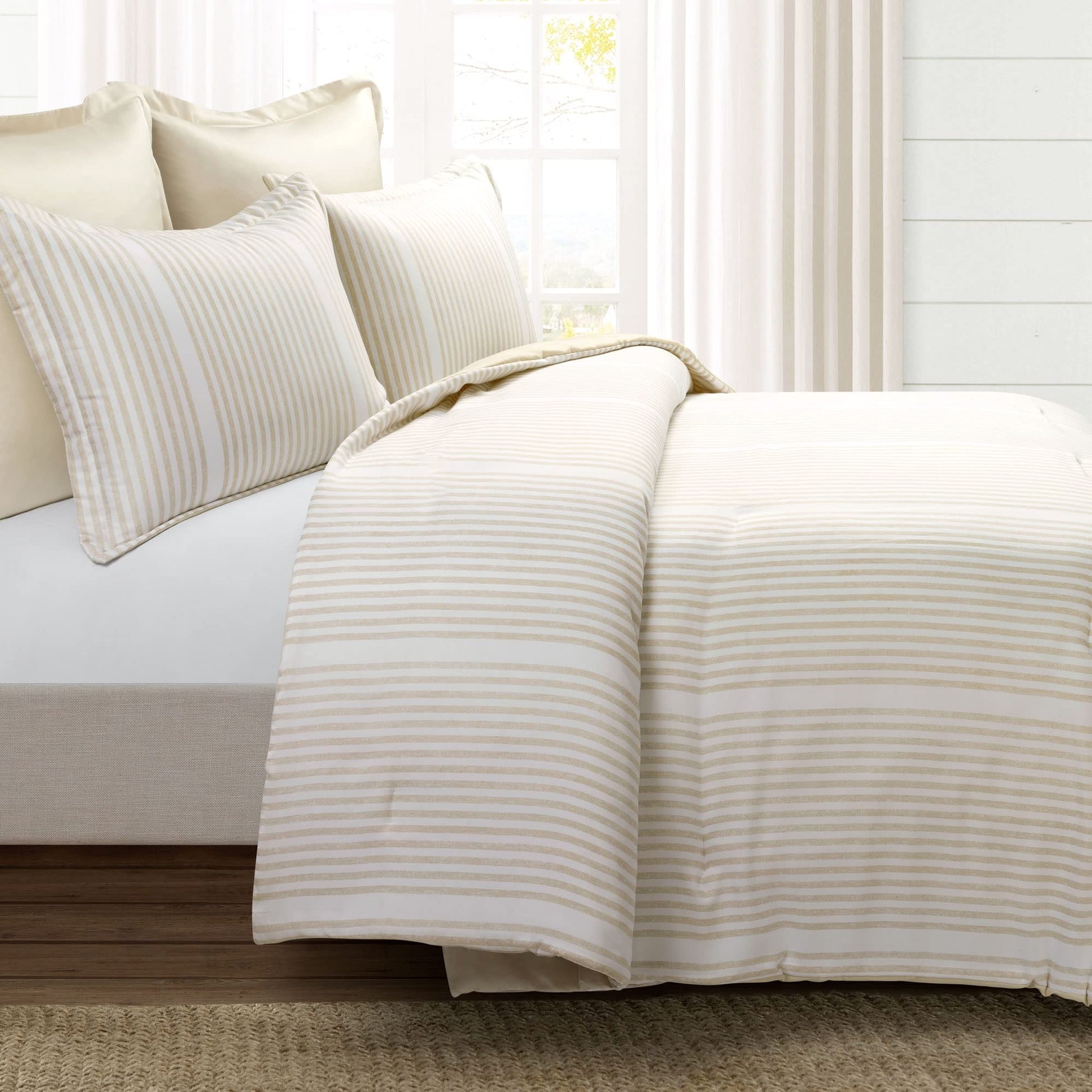 Farmhouse Drew Stripe Silver-Infused 5 Piece Comforter Set, Full/Queen, Neutral