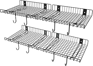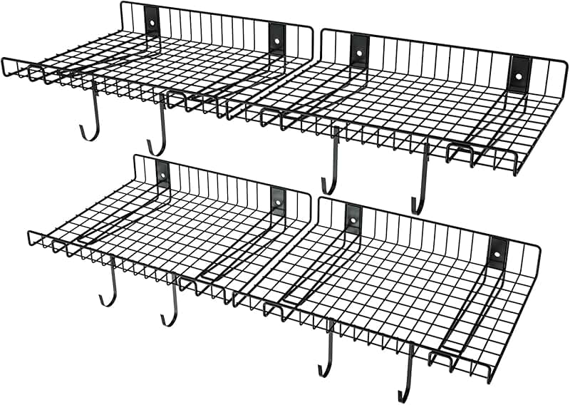 This set includes four wall-mounted storage shelves designed for versatile use in various spaces. Made from durable metal, these heavy-duty shelves support up to 260 pounds each, providing reliable storage for tools, supplies, or household items. The open mesh design allows for easy visibility and airflow, making them suitable for garages, offices, basements, kitchens, or wall cabinets. Easy to install, these floating shelves help maximize wall space and keep your area organized. Their sturdy construction ensures long-lasting performance, while the sleek design adds a modern touch to any room. Ideal for creating additional storage in cluttered areas, these shelves are a practical solution for home or workspace organization. The set offers a convenient way to keep items accessible and neatly arranged, enhancing the functionality of your environment.