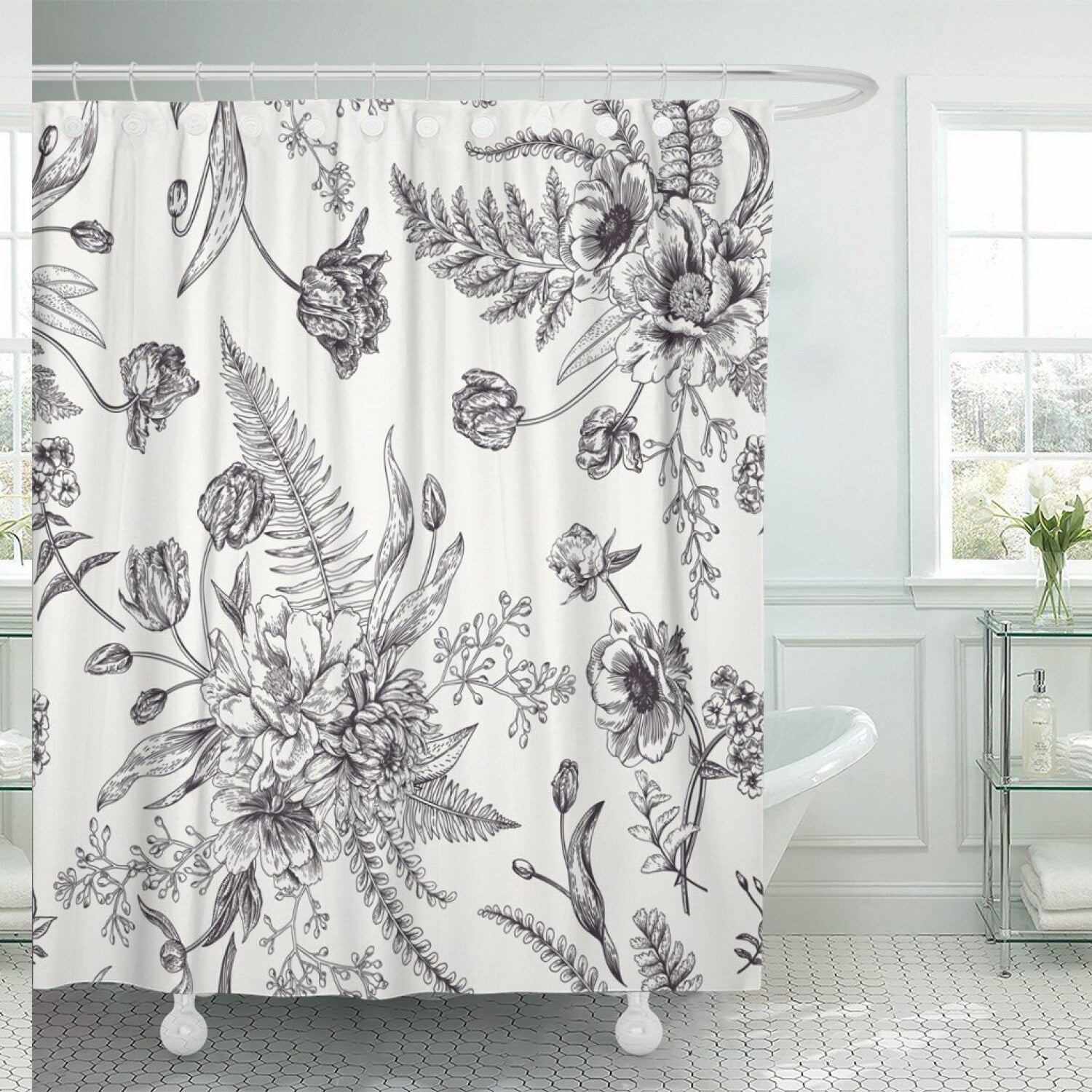 This shower curtain features a floral pattern with bouquets of spring flowers in black and white, made from waterproof polyester fabric. Measuring 72 inches by 72 inches, it is suitable for bathtubs, shower stalls, or any bathroom. The package includes one shower curtain and twelve plastic hooks for easy installation. Designed with current trends in mind, it offers a stylish addition to your bathroom decor. The fabric is machine washable in cold water, and it can be ironed at a low temperature. Care instructions advise against tumble drying, bleaching, or dry cleaning to maintain the curtainβs quality. Please note that due to monitor differences and lighting conditions during photography, the actual product may vary slightly from the images. This versatile and elegant shower curtain makes a thoughtful gift for loved ones, including family members and friends, with its charming floral design and practical features.