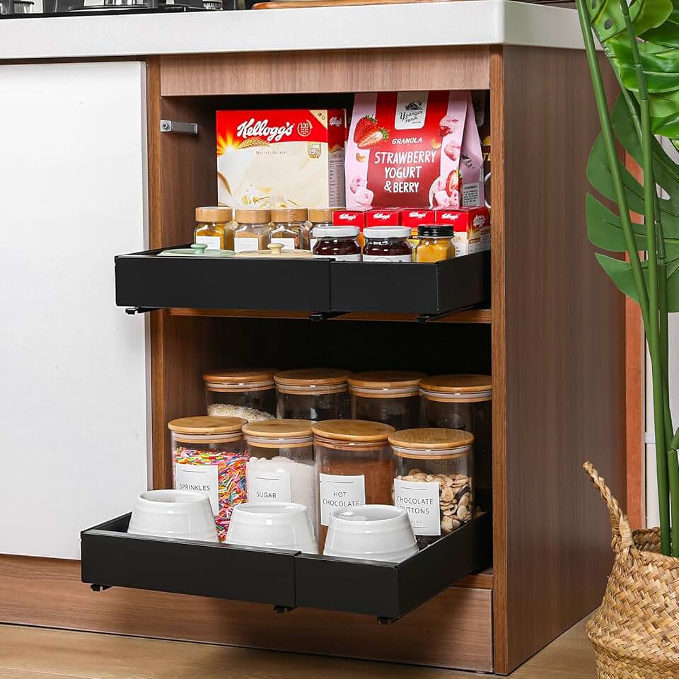 Adjustable Pull-Out Cabinet Shelf Organizer, 2 Pack