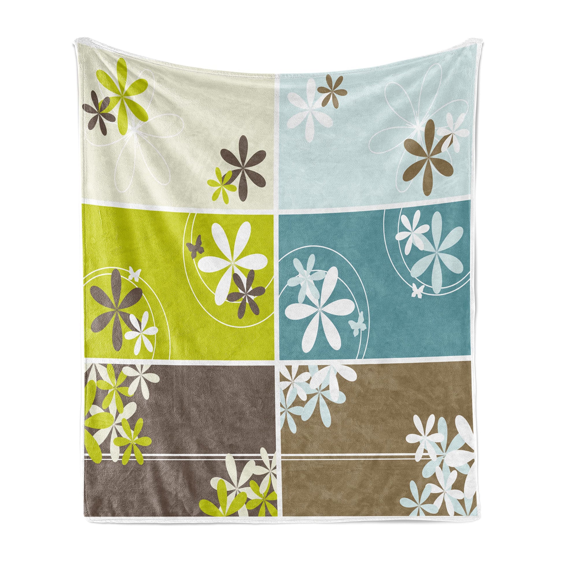 Floral Soft Flannel Fleece Throw Blanket, Abstract Spring Inspired Set with Blossoms and Rectangles Geometric Retro Style, Cozy Plush for Indoor and Outdoor Use, 50" x 60", Pale Blue
