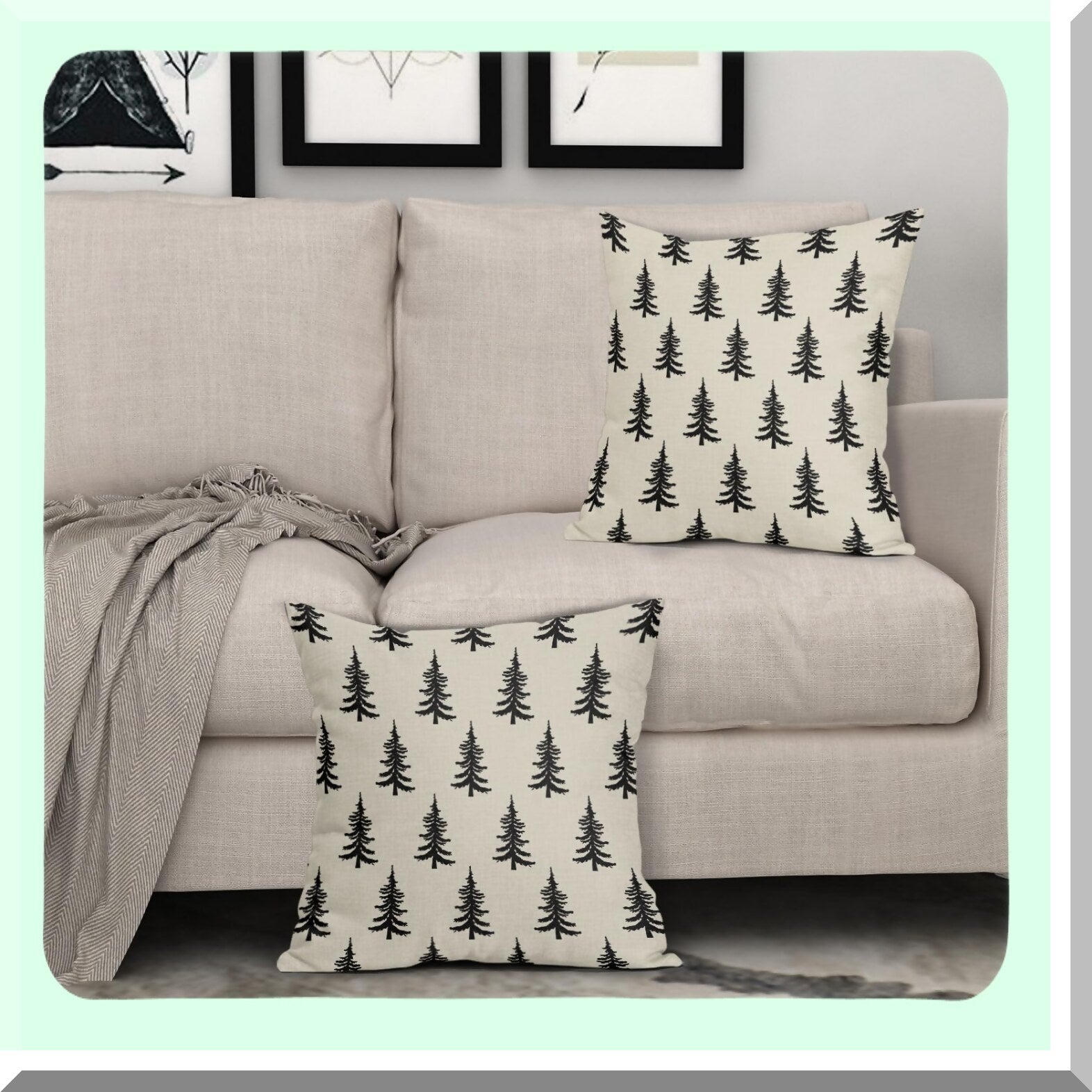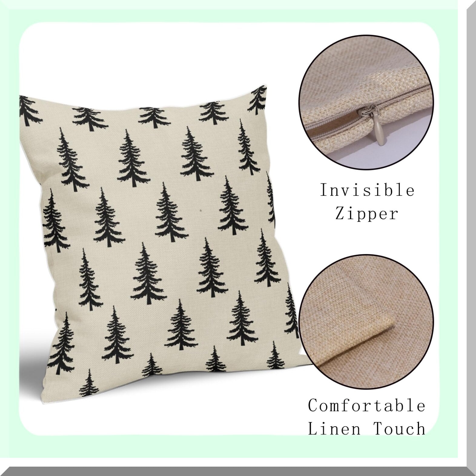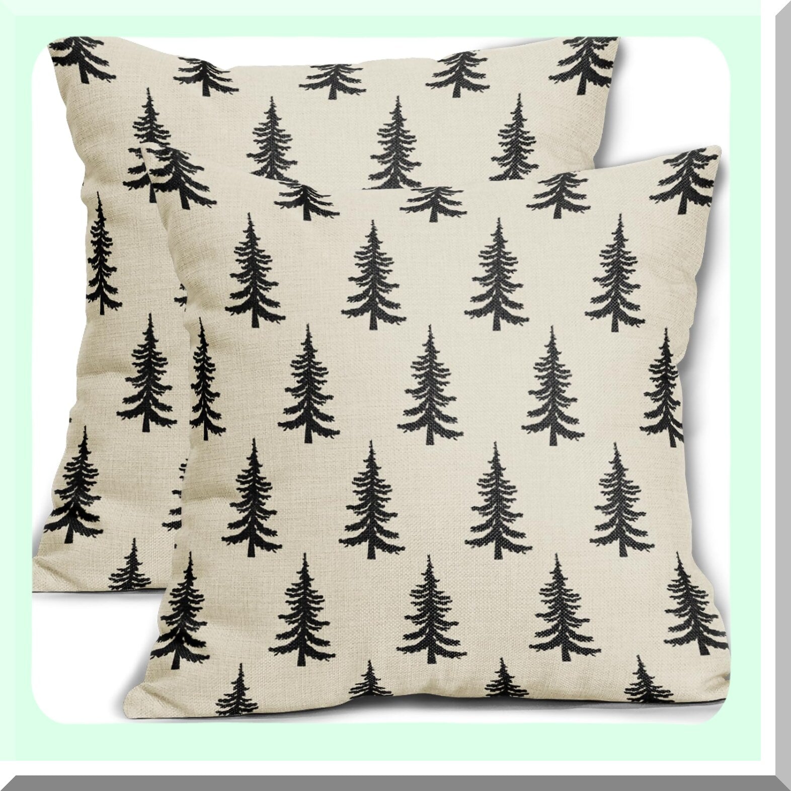 Winter Wonderland Tree Pillow Covers - Set of 2 Black Xmas Rustic Style 18x18 Outdoor Pillowcases. Farmhouse Vintage Holiday Decorations for Couch, Sofa, Bed.