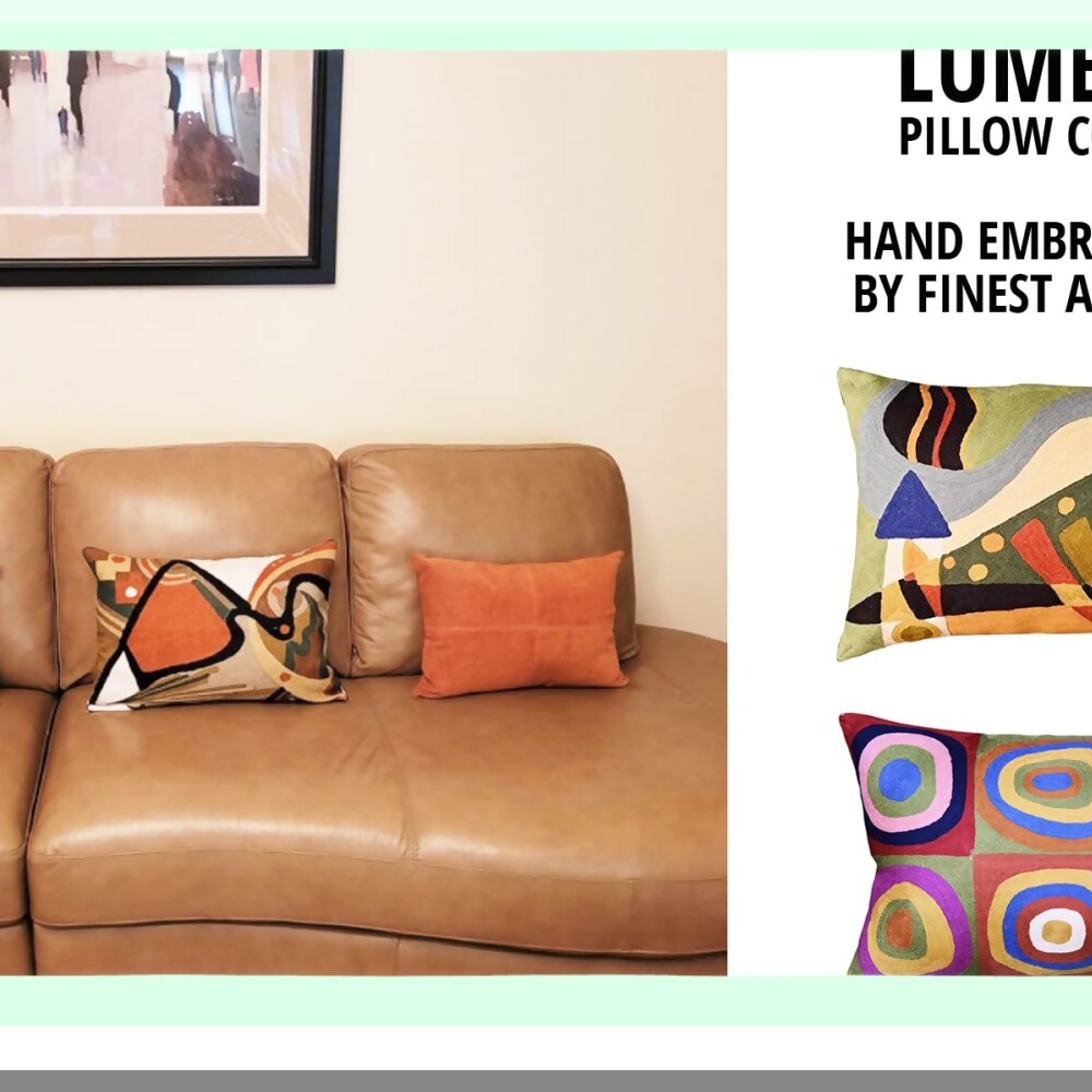 Enhance your decor with a unique, hand-embroidered colorful pillow that adds vibrancy to both transitional and modern style spaces. Perfect for home or office, it brings a lively touch to any setting.