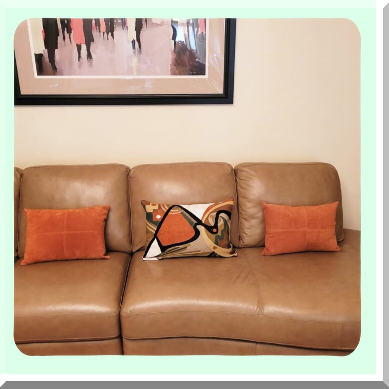 FlowBurnt Lumbar Pillowcase - Abstract Farmhouse Chair Cushion. Hand-Embroidered Wool Cover for Modern Outdoor Cushions. Size 14x20.