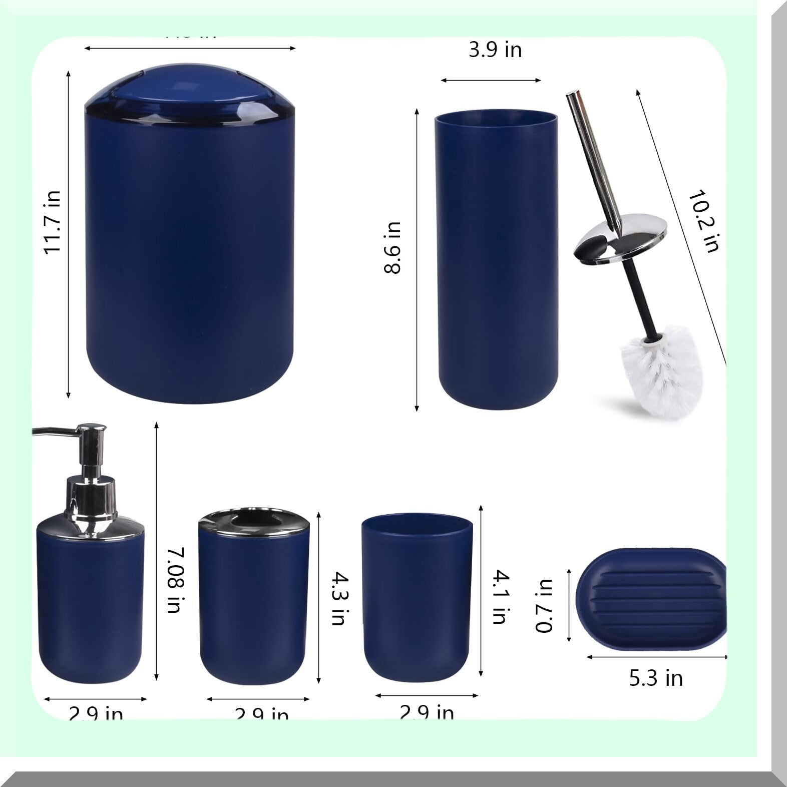 This 6-piece bathroom accessories set includes a soap dispenser, toothbrush holder, toothbrush cup, soap dish, trash can, and a tet brush holder. Made of durable plastic, these accessories are designed to withstand constant use while maintaining their elegant appearance over time. They help organize and decorate your bathroom, transforming it from dull to charming with ease. The set offers a variety of pieces that add a fresh, clean look to any bathroom space. Dishwasher safe, these accessories are practical and easy to clean. Perfect for enhancing your bathroom decor or as a housewarming gift, this set combines functionality with style. Crafted for durability and quality, it provides a reliable solution for bathroom organization. If you're not satisfied, customer service offers a full refund, making this purchase risk-free. Upgrade your bathroom with this versatile and stylish accessory set today.