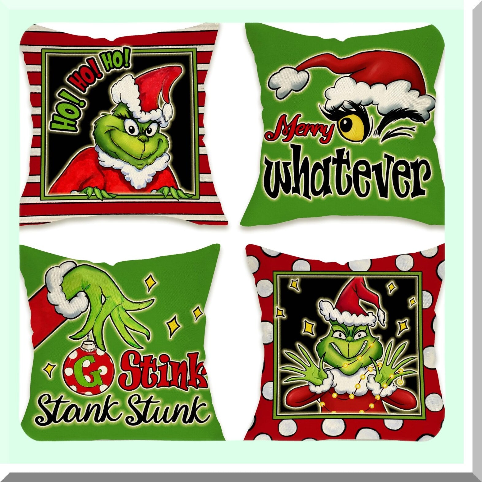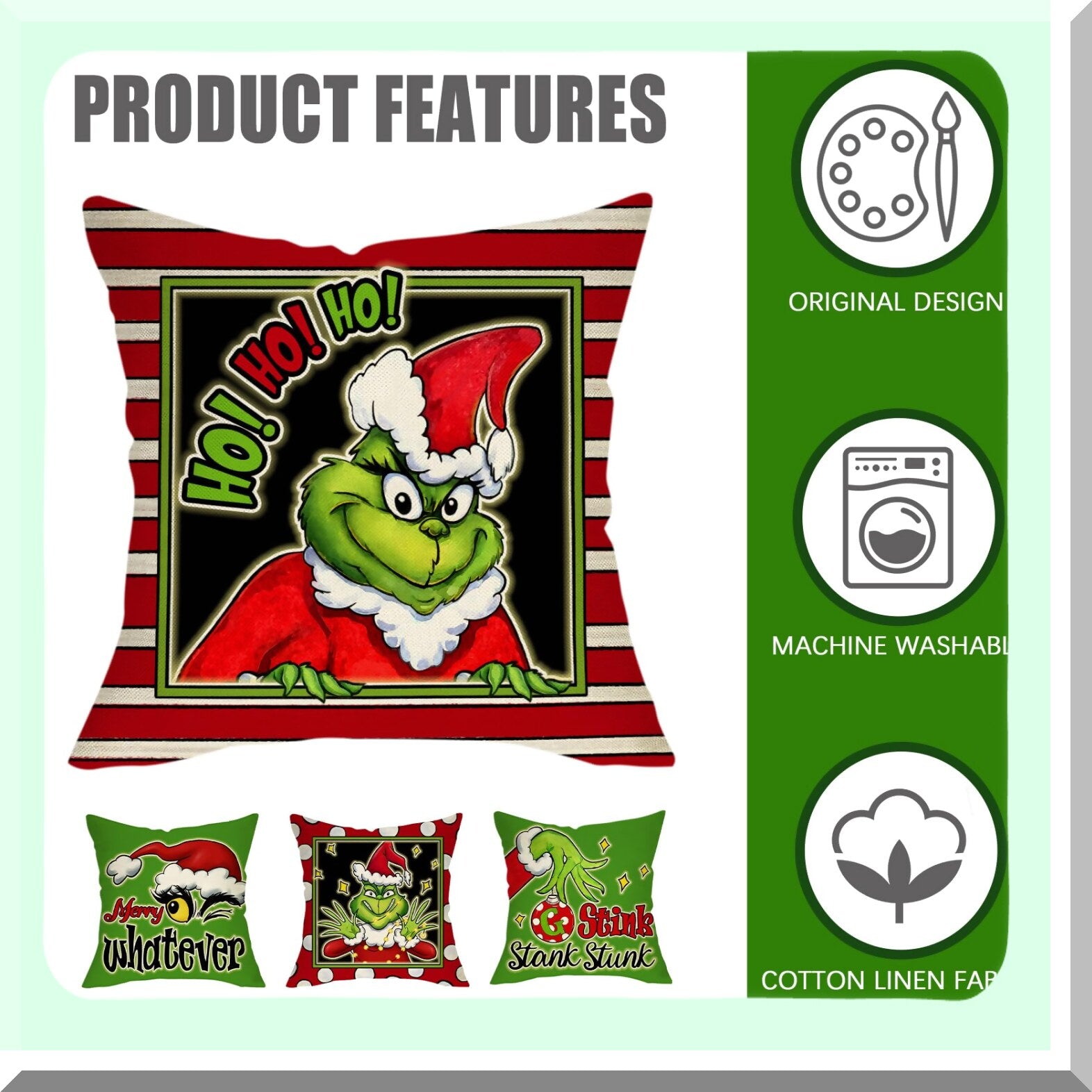 Winter Wonderland Festive Stripe Pillow Cover Set - 18x18, Xmas Hat Hohoho Holiday Patio Pillowcase, Stink Stank Stunk Polka Dot Cushion Case