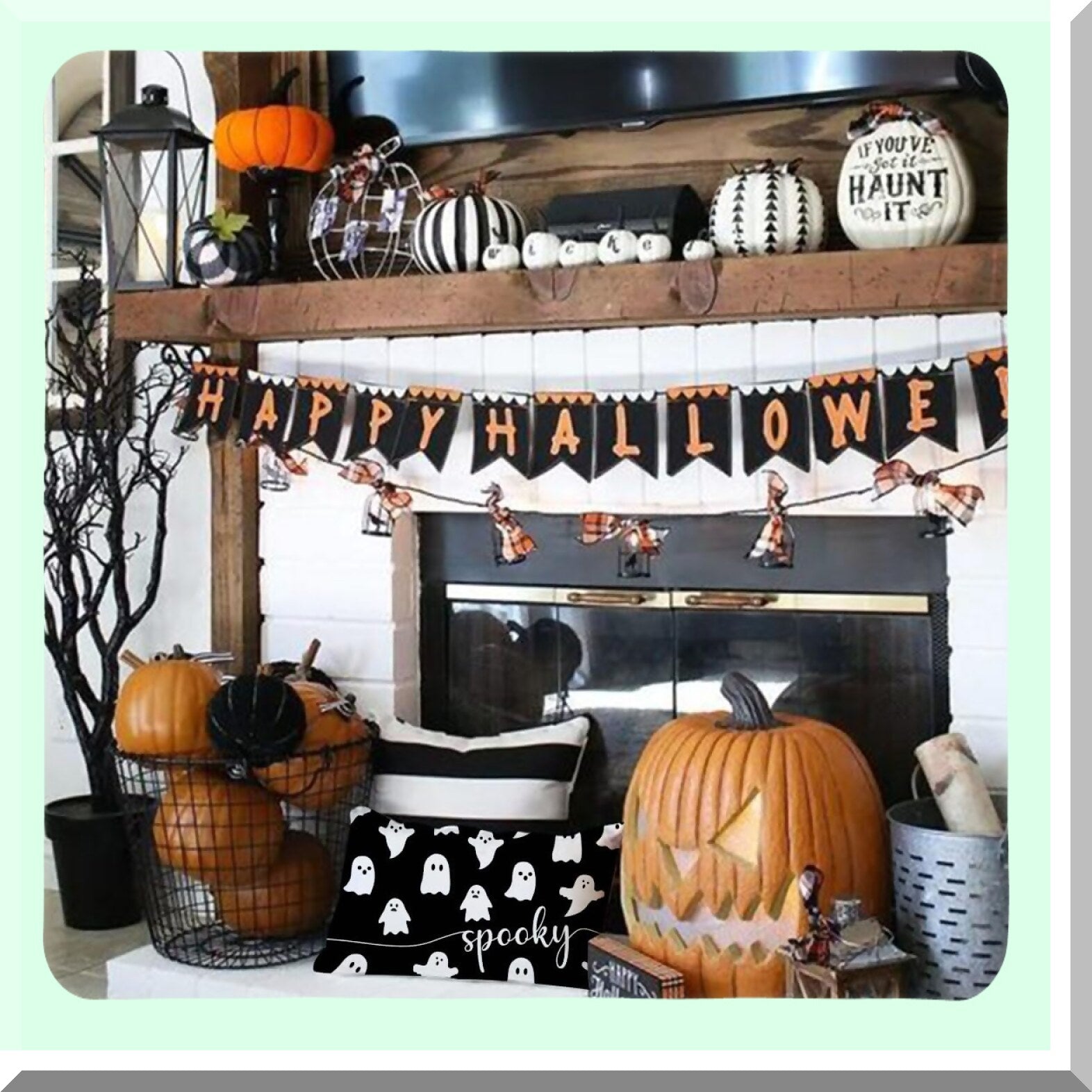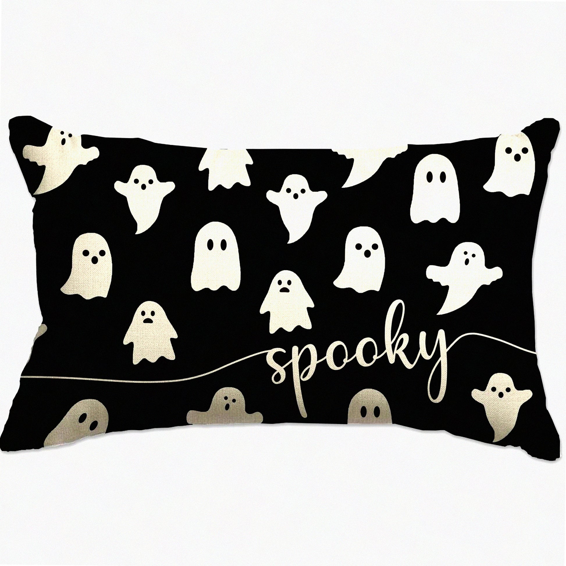 Spooky Ghost Lumbar Pillow Cover - 12x20 Outdoor Decorative Sofa Cushion Case for Home Decorations - Halloween Theme Pillow Case