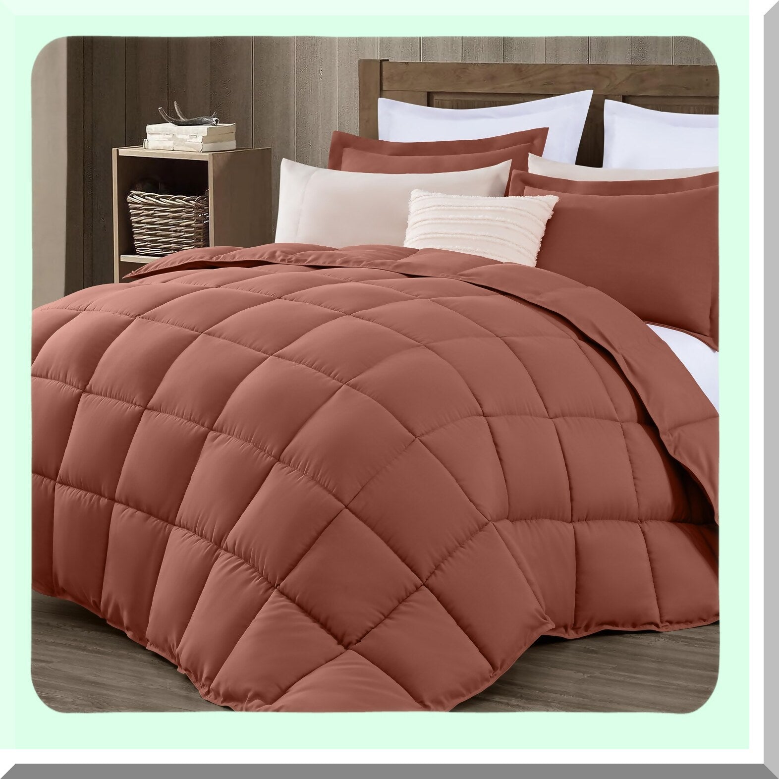 Peach Bliss Terracotta Queen Comforter Set - 3-Piece 110GSM Microfiber Polyester All Season Down Alternative Bedding Set