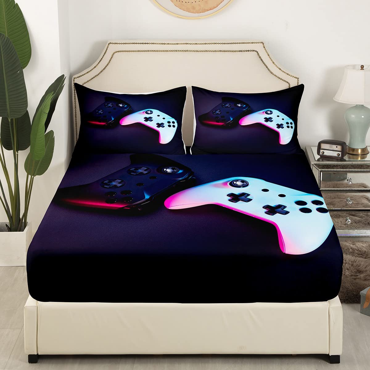 Gamer Bed Sheets for Boys Black and Red Gaming Sheet Set Video Game Bedding Game Controller Fitted Sheet Kids Teens Full Size Includes 1 Sheets 2 Pillowcases No Flat Sheet)