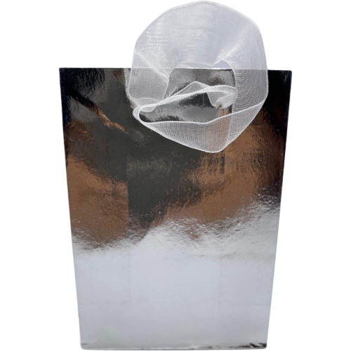 MODAIO-Gift Bags Small Size – Reusable Gift Bags With Handles Stunning Colors - Perfect As Goodie Bags, Birthday Gift Bags, Party Favor Bags– 4"W x 3"D x 6"H Size-1/count (Silver)