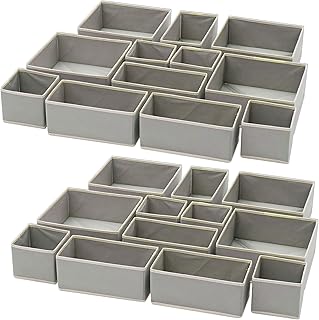 This set includes 24 foldable cloth storage boxes designed for organizing various items in your closet or dresser. Made from durable fabric, these baskets are suitable for storing baby clothes, underwear, bras, socks, lingerie, and other clothing items. The foldable design allows for easy storage when not in use, saving space. Each box provides a neat and tidy way to separate and organize different categories of clothing, helping to keep your space orderly. The neutral grey color complements a variety of decor styles, making them versatile for different settings. These fabric bins are lightweight yet sturdy, offering a practical solution for maintaining an organized wardrobe or storage area. Ideal for use in bedrooms, closets, or dressing areas, they help maximize storage efficiency while keeping your belongings easily accessible.