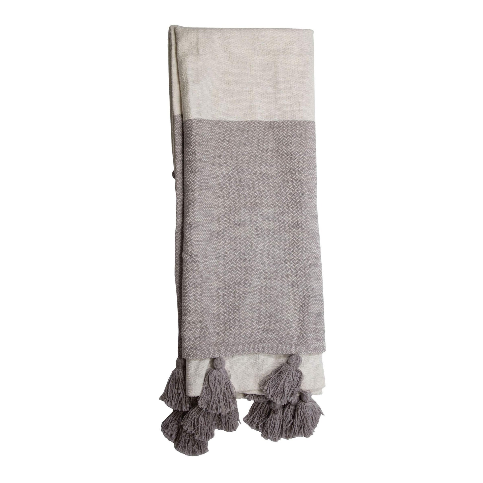 Gray Striped Handwoven 50 x 60 inch Cotton Throw Blanket with Hand Tied Fringe