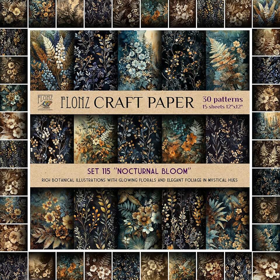 Nocturnal Bloom Scrapbook Paper with Botanical Designs