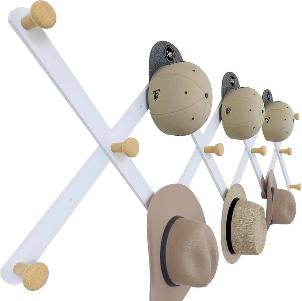 This large wall-mounted hat rack features a wooden accordion design with 14 expandable hooks, providing ample space for organizing hats, coats, and accessories. Its modern style complements various interior decor themes, making it suitable for homes, offices, and studios. The expandable design allows for flexible arrangement, accommodating different storage needs. Crafted from durable wood, the rack offers a sturdy and stylish solution for keeping your space tidy. The natural and white finish enhances its contemporary appearance, blending seamlessly with different color schemes. Easy to install, this wall hanger helps maximize vertical space while maintaining an organized look. Its versatile design makes it ideal for displaying and storing multiple items efficiently. Whether used in entryways, bedrooms, or workspaces, this expandable coat hook rack provides a practical and attractive storage option.