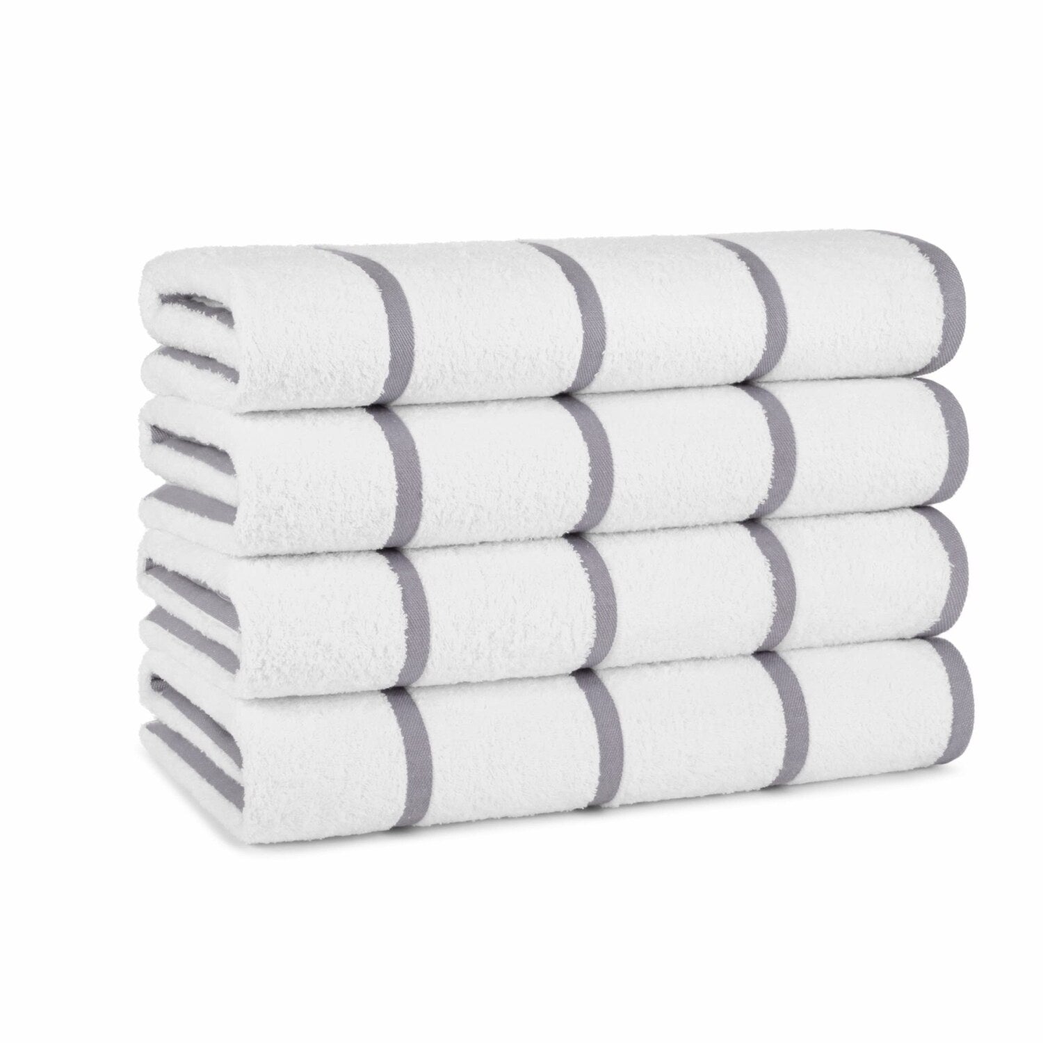 The Las Rayas Beach Towels come in a pack of four, each measuring 30 x 60 inches. Crafted from 100% ring spun cotton, these towels are soft, plush, and highly absorbent with a weight of 480 GSM. The bright white towels feature charming colored stripes running across their width, adding a touch of elegance and vibrancy to any setting. Designed for versatility, they are ideal for use at the beach, pool, or bath, and are suitable for both adults and children. Their quick-drying nature makes them practical for travel, camping, or fishing trips. The towels are easy to pack and carry, making them perfect for vacations or everyday use. Whether used in a bathroom, guest room, or rental property, these towels enhance any decor with their lively stripes and plush texture. A bulk case pack of 24 ensures ample supply for various needs.