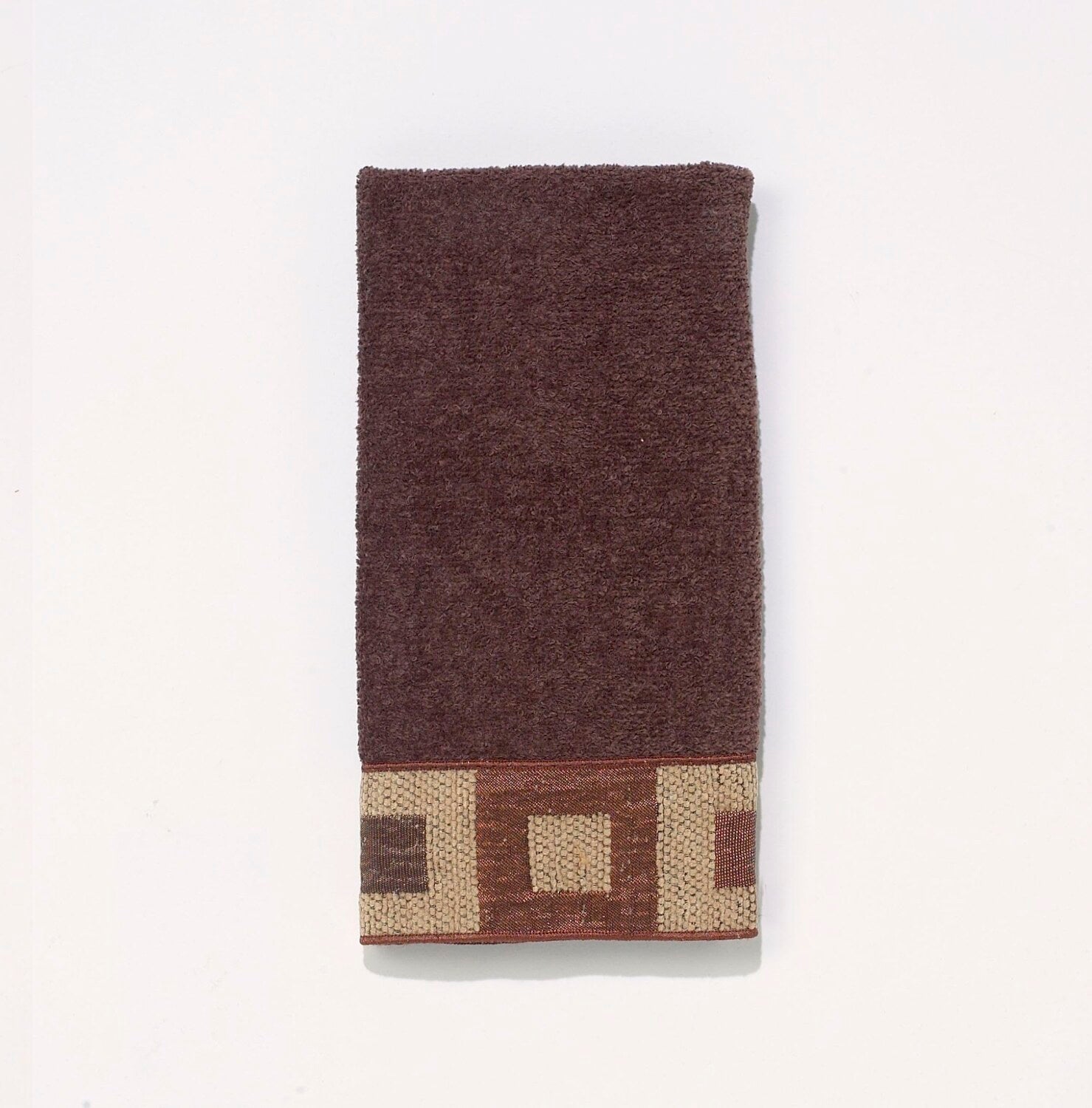 The Bathroom Precision Collection Fingertip Towel in Mocha offers a sophisticated addition to your bathroom. Crafted from 100% cotton, this towel features a contemporary geometric jacquard woven border in shades of brown, taupe, and gold, adding a touch of elegance. The mocha velour towel provides a soft, plush feel, making it ideal for quick hand drying. Its refined design and high-quality fabric ensure durability and comfort. Perfect for elevating your bathroom decor, this towel combines style and functionality in a sleek, modern look. Imported for quality craftsmanship, it is a versatile accessory suitable for everyday use or special occasions. The towelβs size and design make it a practical yet stylish choice for fingertip drying needs. Enhance your bathroom with this beautifully woven, plush towel that seamlessly blends contemporary design with everyday practicality.