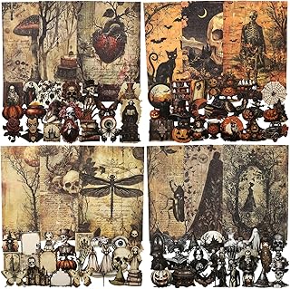 A set of 240 vintage gothic-themed scrapbook stickers and material sheets designed for various craft projects. Ideal for decorating journals, albums, cards, and Halloween decorations. Suitable for DIY crafts and gift embellishments, offering a variety of styles to enhance creative projects.