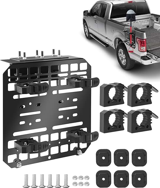 This multifunctional shovel holder is designed for truck beds, providing a secure and convenient way to store shovels and flags. It features four rubber quick-release clips that allow for easy installation and removal without the need for drilling or tools. The holder is adjustable to fit handle diameters ranging from 1-1/7 inches to 1-3/7 inches, ensuring a snug fit for various tools. Its durable construction is suitable for outdoor use and can withstand harsh weather conditions. The design helps keep tools organized and easily accessible, reducing clutter in the truck bed. Ideal for trucks and trailers, this holder enhances storage efficiency and safety during transportation. Its punch-free installation makes it a practical solution for those seeking a reliable and versatile tool mounting option.