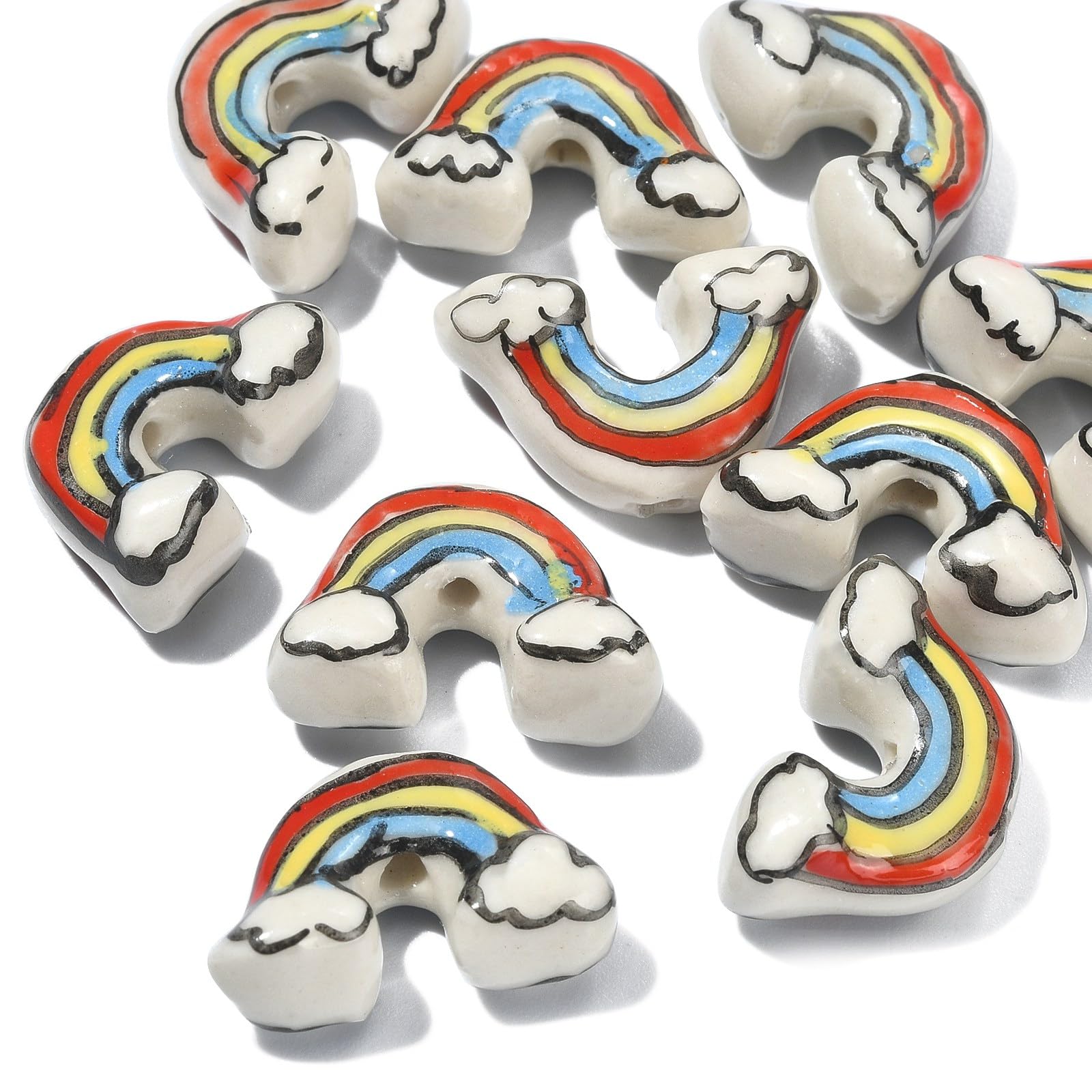 These all porcelain beads measure approximately 12.5mm in length, 18mm in width, and 8mm in thickness, with a 1.6mm hole. Each set includes 10 rainbow-colored beads, with slight variations in size, shape, and color due to handcrafted production. Made from durable porcelain, these elegant flower-shaped beads feature vibrant colors and delicate designs, ensuring they are resistant to fading and breakage while remaining lightweight for easy handling. Ideal for jewelry making and craft projects, they can be strung with beading cords, hooks, or connectors to create necklaces, bracelets, or decorative accessories. These beads are perfect for DIY activities with friends or family, offering a fun way to design personalized jewelry. They also make thoughtful gifts for occasions such as birthdays, holidays, or special celebrations, allowing you to express love and care through handcrafted creations. Suitable for various jewelry and craft projects, these rainbow porcelain beads add a charming touch to your designs.