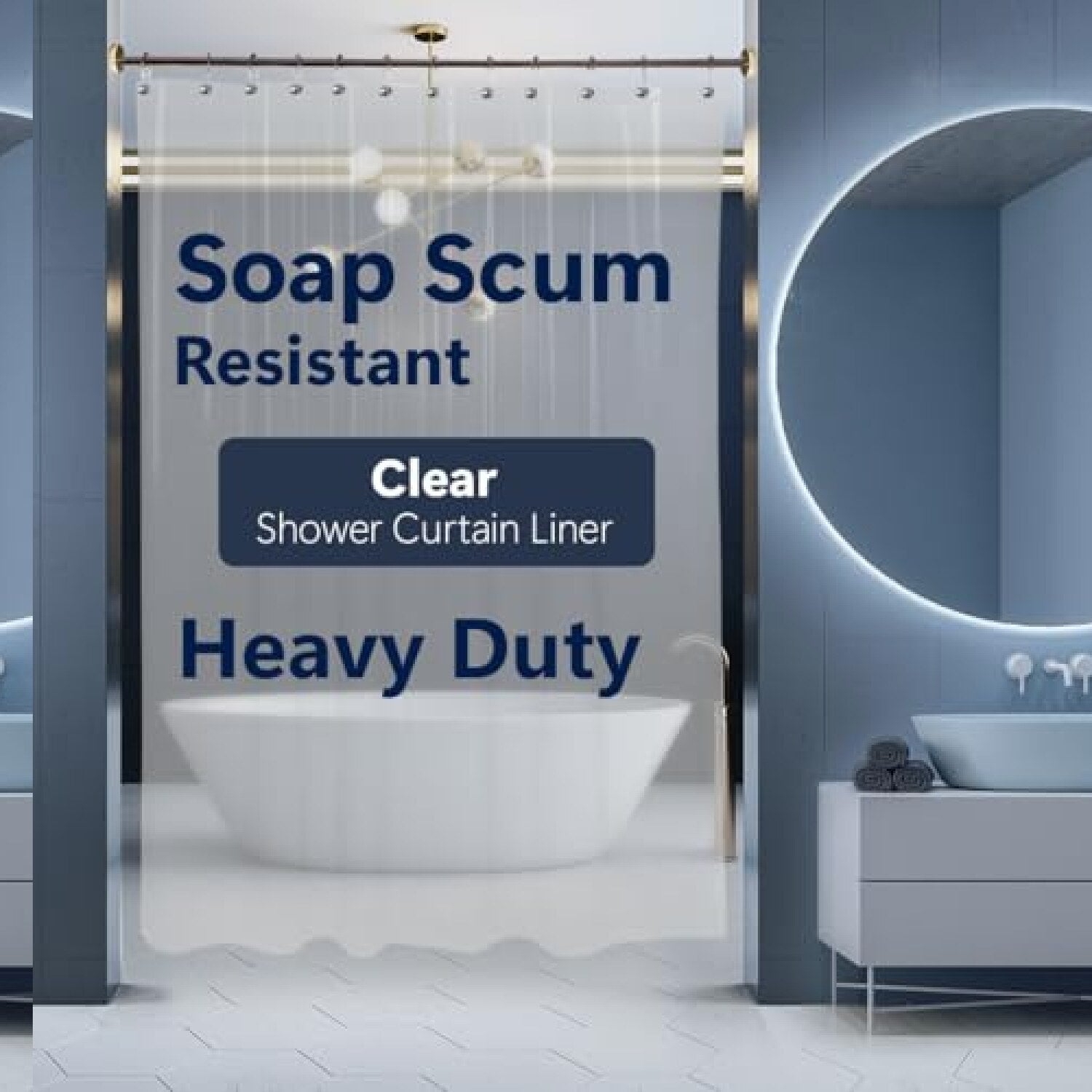 Experience a fresher shower every time with this heavy-duty clear vinyl shower curtain liner measuring 72 inches by 72 inches. Crafted from premium material designed to withstand wet environments, it resists stains and odors, keeping your bathroom looking and smelling clean. The liner combines style and practicality, offering a sleek appearance while maintaining its resistance to common issues. Reinforced with a nylon mesh header and rust-proof metal grommets, it ensures durability and prevents tearing at the eyelets. Its heavyweight vinyl stays in place naturally without the need for magnets, draping smoothly and remaining securely positioned during use. Perfect for enhancing your shower experience, this liner is both functional and attractive, providing a reliable barrier that resists odors and stains while maintaining a clean, polished look. Enjoy a more comfortable, hygienic shower with this durable, stylish, and easy-to-maintain vinyl liner.