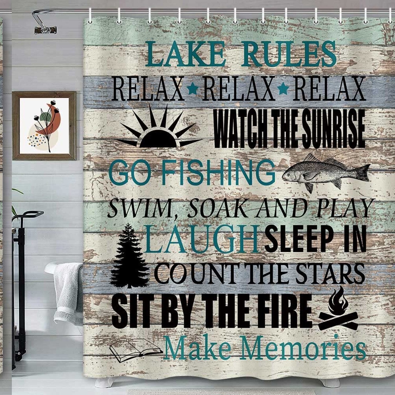Rustic Lake Rules Shower Curtain 72x72 inches with Hooks