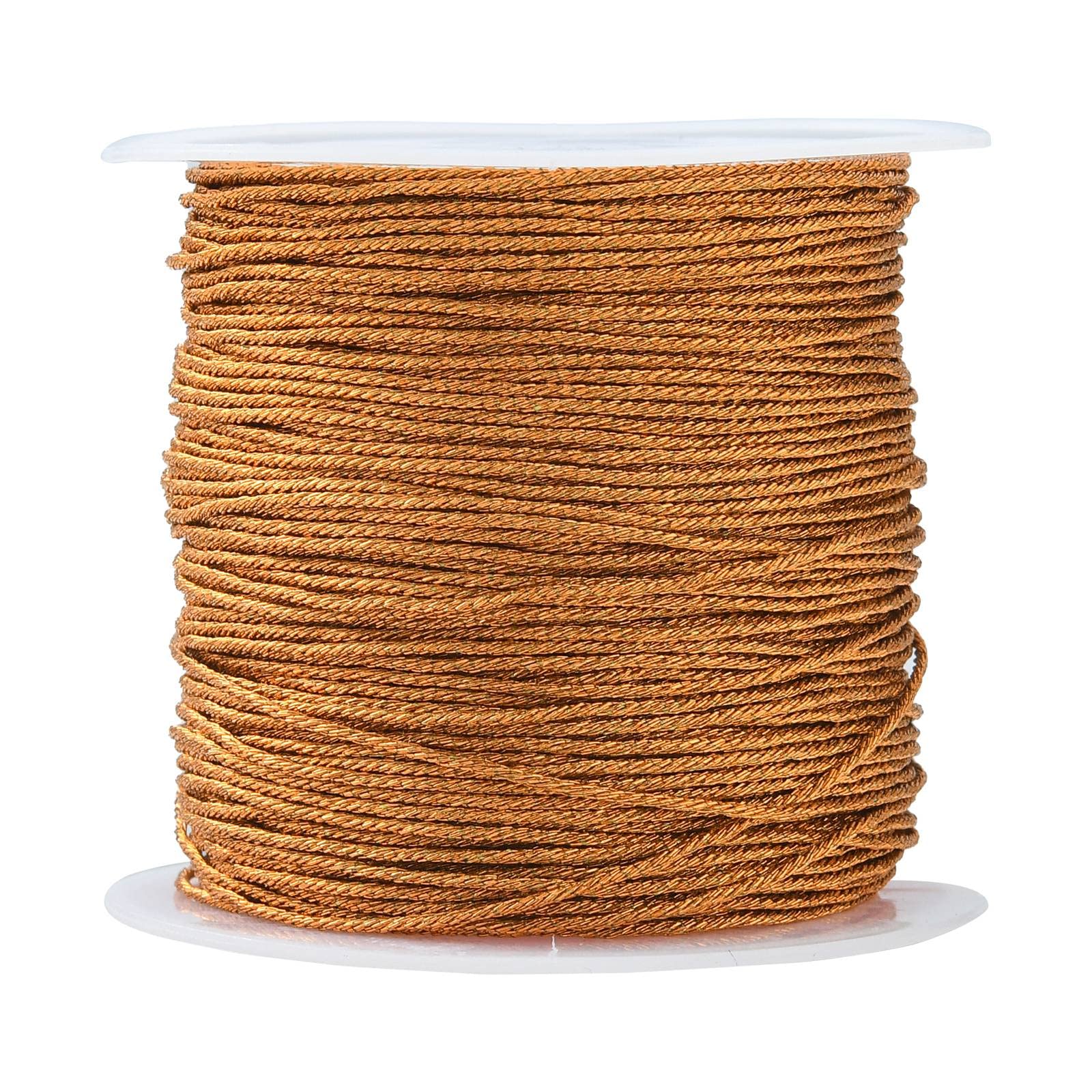 This set includes one roll of metallic jewelry thread in a vibrant goldenrod color, measuring approximately 0.8mm in diameter and 27.34 yards (25 meters) long. The 12-ply cord is made from high-quality metallic material, offering strength, durability, and a bright, attractive appearance. Its versatile design makes it suitable for various craft projects, including jewelry making such as necklaces, bracelets, anklets, and keychains, as well as decorating gift tags, wrapping presents, and embellishing party decorations. The shiny, glittering finish adds a decorative touch to crafts, gift boxes, and packaging, helping your creations stand out. The cord can be cut to desired lengths to meet different project needs, providing flexibility for DIY enthusiasts and crafters. Its reliable material ensures safe and long-lasting use across a wide range of creative applications, making it an ideal choice for jewelry, gift wrapping, and decorative crafts.