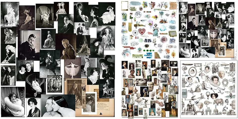 This set includes five packs of junk journal supplies featuring translucent stickers and vintage-style ephemera. The collection offers a variety of dark and artistic characters, perfect for scrapbooking and journaling projects. The supplies are designed to add a unique, vintage touch to creative layouts, providing a mix of decorative elements and textured materials. Ideal for those who enjoy crafting with a dark, artistic theme, these items can enhance the visual appeal of journals, collages, and mixed media art. The assortment is versatile and suitable for various creative projects, offering a range of textures and designs to inspire your artistic expression.
