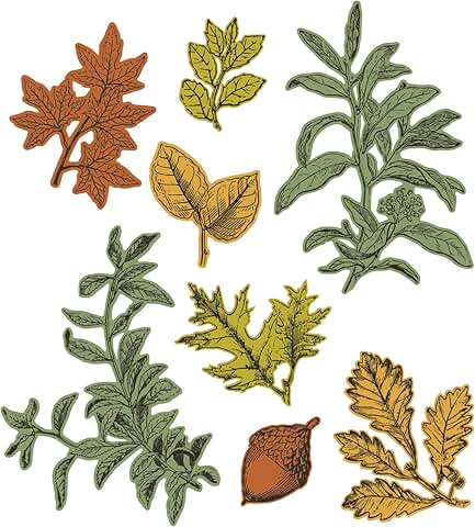 This set includes clear stamps and matching framelits designed for creating detailed leaf images. The stamps feature various leaf designs, allowing for versatile crafting options. The framelits are shaped to precisely cut out the stamped images, making it easy to add dimension to your projects. Ideal for card making, scrapbooking, and other paper crafts, this set provides a simple way to add natural elements to your designs. The clear stamps are easy to position and reuse, while the framelits ensure clean, accurate cuts. Suitable for a range of creative projects, this set offers a straightforward way to incorporate detailed leaf motifs into your work.