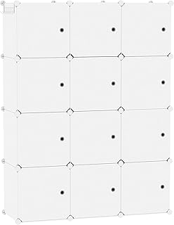 The C&AHOME Cube Storage Organizer features 12 spacious cube shelves with doors, providing versatile storage for various spaces. Its modular design allows for easy customization to fit different room layouts. Made from durable plastic, the organizer is suitable for bedrooms, living rooms, or other areas needing organized storage. The closet cabinet offers concealed compartments to keep belongings tidy and out of sight. With a sturdy structure, it supports a range of items, from books to decorative pieces. The compact dimensions of approximately 36.6 inches in length, 12.4 inches in width, and 48.4 inches in height make it a practical addition to many room sizes. Its clean, simple design complements various interior styles, helping to maximize space efficiency while maintaining a neat appearance. Easy to assemble, this modular bookshelf is a functional solution for organizing your home.