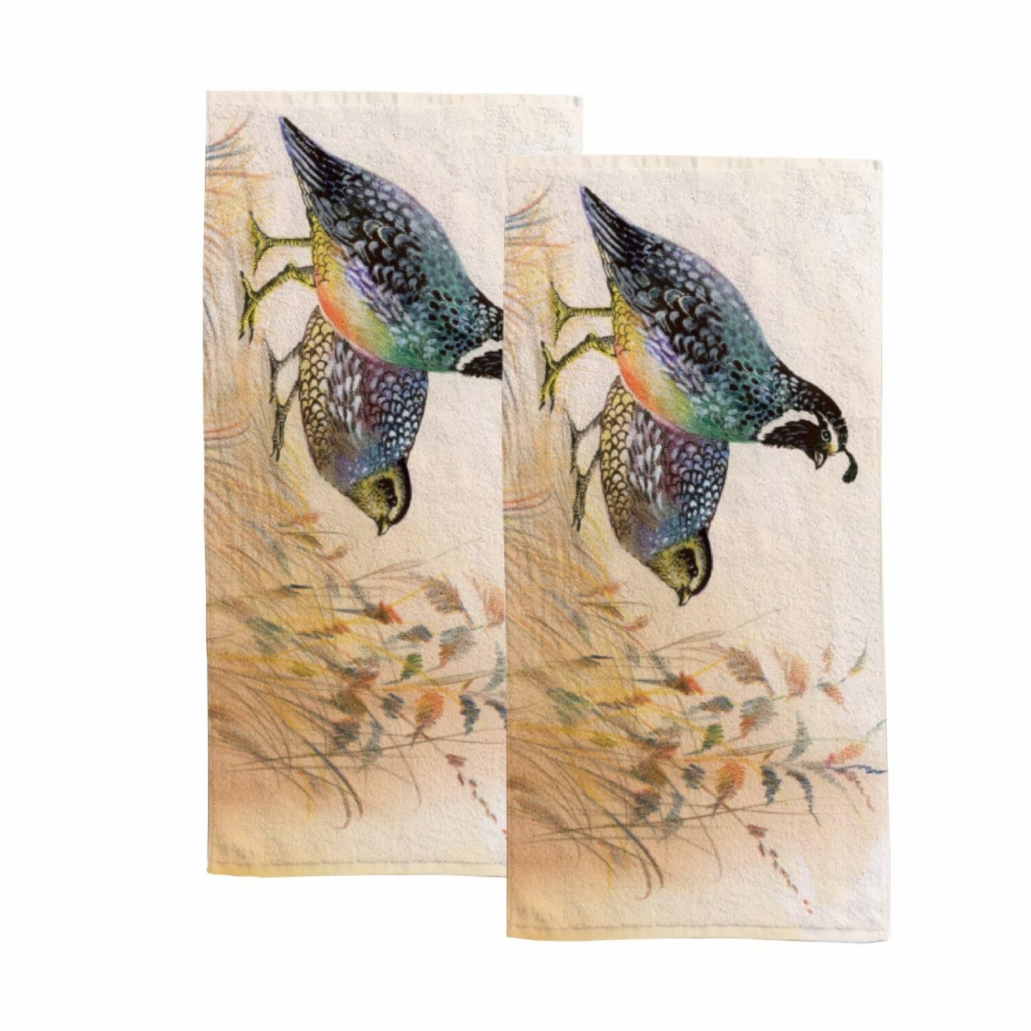 Set of 2 Watercolor Quail Hand Towels 30x15 Inch