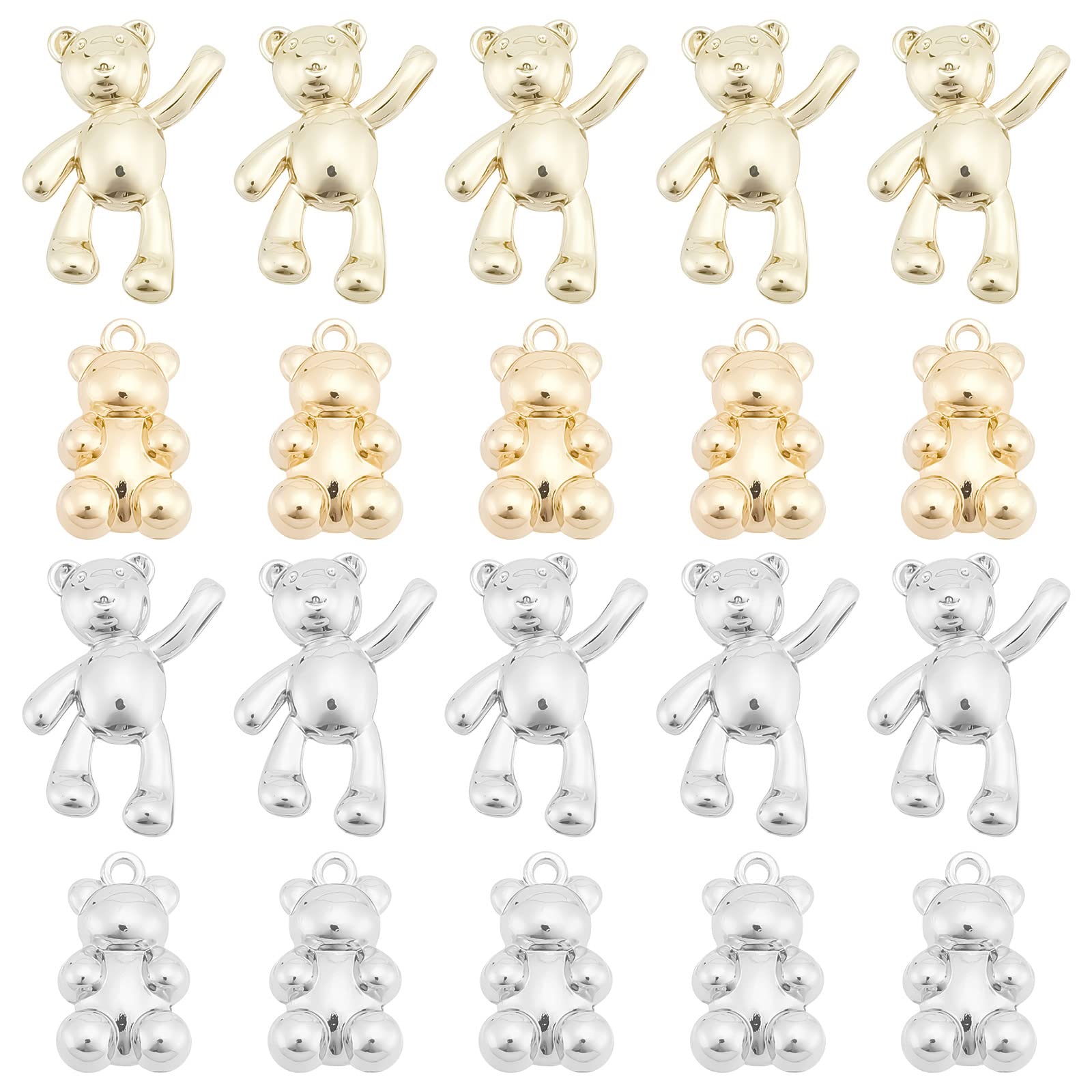 A set of 40 teddy bear charms in four different styles offers versatile options for jewelry making and craft projects. These cute charms come in two colors, gold and silver, and feature various sizes to suit different designs. Made from durable alloy, they resist deformation and maintain a shiny appearance over time. Each charm has a hole for easy attachment to bracelets, necklaces, earrings, anklets, or keychains. The package includes plastic bead containers for convenient storage. Ideal for creating personalized gifts, these charms are suitable for making thoughtful presents for occasions such as birthdays, holidays, or anniversaries. Their charming bear designs add a playful touch to any accessory or craft project, making them perfect for both beginners and experienced crafters. Use these high-quality charms to enhance your jewelry collection or craft unique gifts for loved ones.