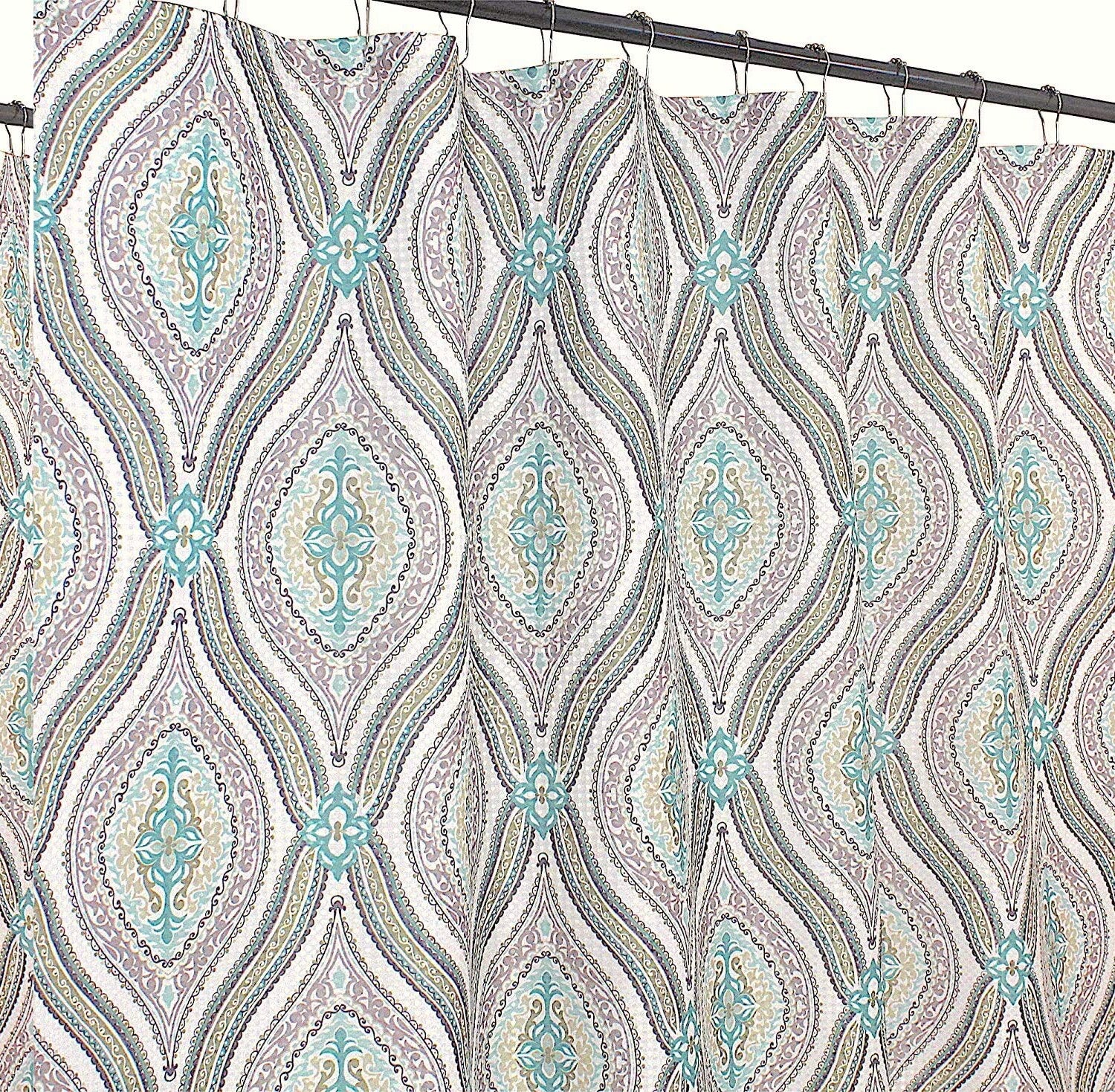 This modern damask paisley shower curtain measures 72 x 70 inches and features a stylish beige, green, and taupe design. Made from soft, high-quality fabric, it drapes elegantly to enhance your bathroom decor. Reinforced button holes allow for easy installation, while the durable material ensures long-lasting use. Its versatile design complements towels, rugs, and accessories, making it suitable for updating or redesigning your space. The curtain is machine washable, providing convenient maintenance and a fresh look over time. With its sophisticated pattern and elegant appearance, this shower curtain adds a touch of luxury and style to any bathroom. Perfect for creating a quick, attractive upgrade, it combines functionality with decorative appeal to elevate your bathroomโs overall aesthetic.