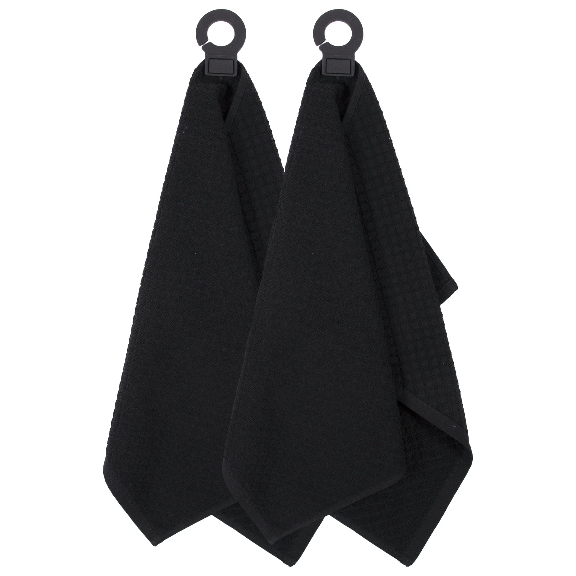 Hook and Hang Towel with Permanent Rubber Hook for Kitchen, Bathroom, Mudroom, Laundry Room, Extra-Large, 18" X 28", Machine Washable, 2 Pack, Black