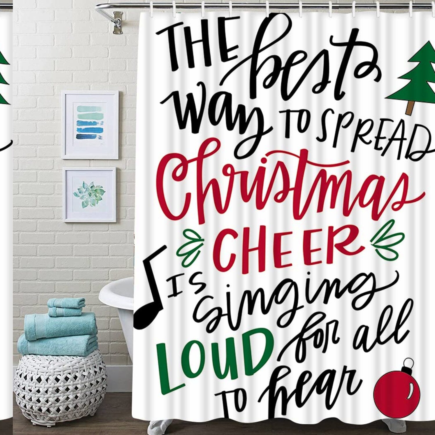 This shower curtain measures 72" W x 72" L and is made from waterproof polyester fabric, providing a durable and stylish addition to any bathroom. Featuring a cheerful quote and playful elf and buddy design inspired by a popular movie phrase, it adds a fun and inviting atmosphere to your space. The set includes one curtain and twelve metal grommet hooks for easy installation. Its waterproof treatment ensures reliable protection against moisture, making it suitable for daily use. Perfect for refreshing the look of a bathroom, guest suite, or hotel bath without significant expense, this curtain offers a quick and luxurious update. Its superior quality guarantees long-term durability, while the vibrant design brings a lively touch to your decor. Whether for yourself or as a gift for family, friends, or loved ones, this curtain is an authentic and interesting choice. For questions, contact us through our shop; responses are provided within 24 hours.
