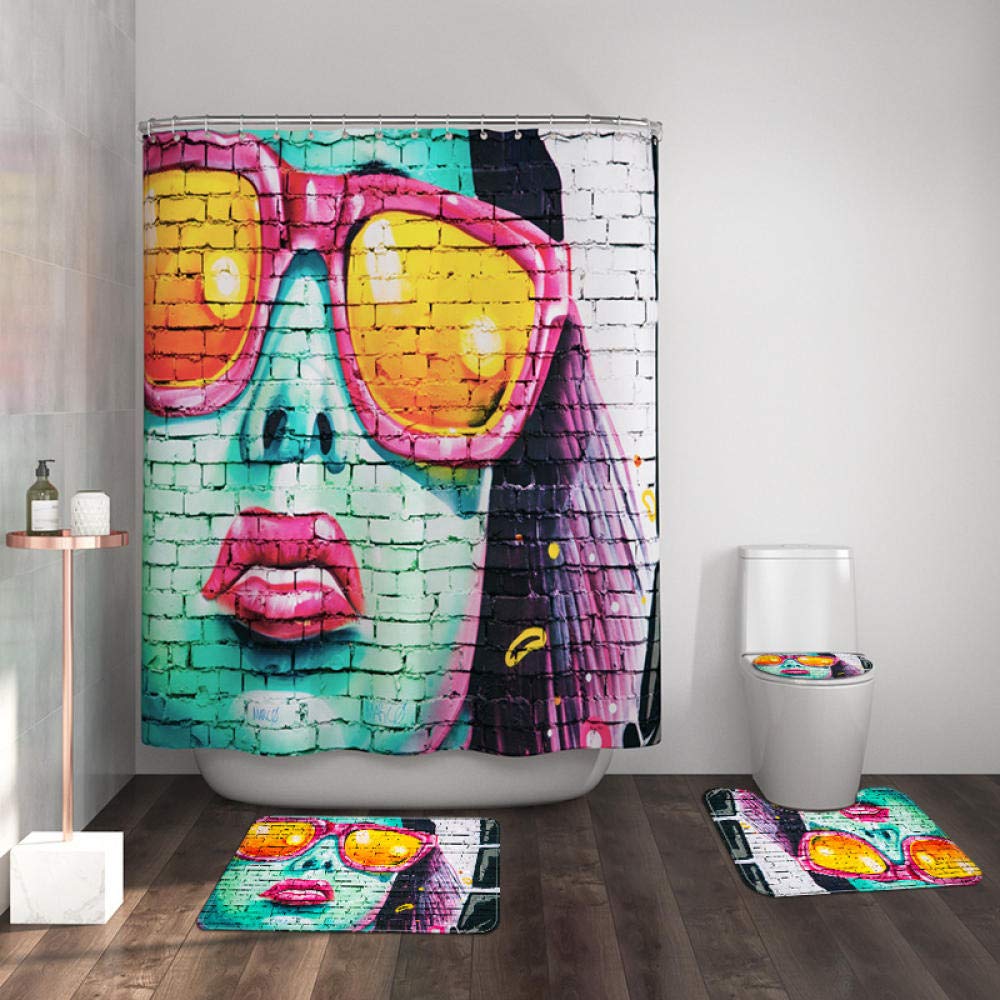 ississ FabricShowerCurtainSet, Ink Texture Waterproof Bath Curtain Tet Lid Cover Bath at Bathroo Shower Curtain,for Tet Roo Decor,Bathtub Use,Hotel Waterproof -YL428+SY428_A