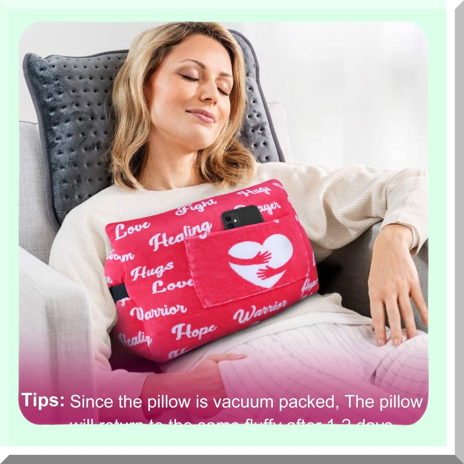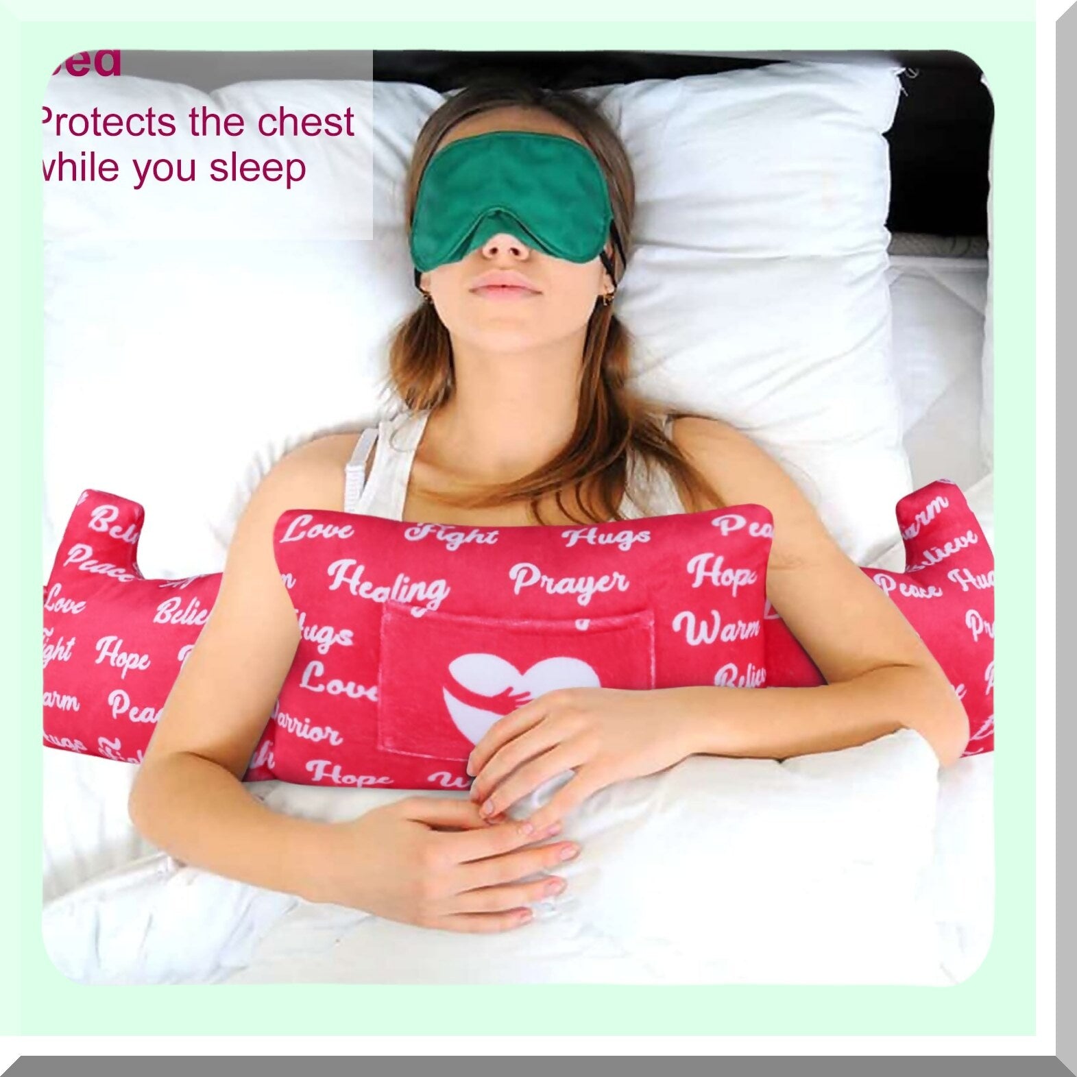 The mastectomy pillow is designed to provide comfort and support for individuals recovering from breast surgery. It helps reduce pain and discomfort, promotes proper healing, and allows for better sleep quality. The pillow is specifically shaped to fit the body and provide relief in the affected area. By using this pillow, users can experience faster recovery times and improved overall well-being during the healing process.