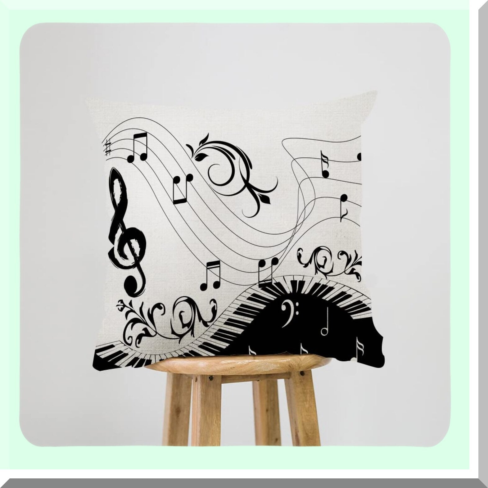 Musical Harmony Pillowcase - Piano Keyboard Note Home Decor Throw Pillow Cover for Sofa 18x18 Inches