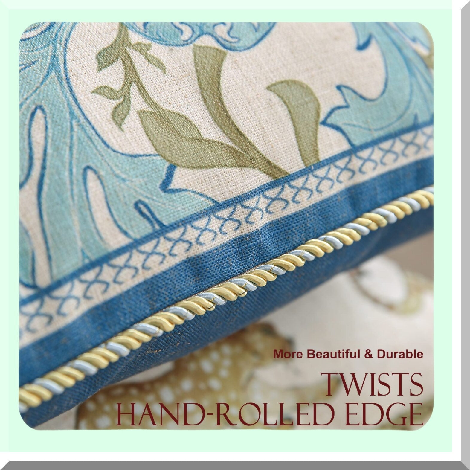 Vintage Blue Floral Lumbar Pillow Covers - Set of 2 | French Linen Farmhouse Decor | Couch & Bed Pillowcases | Fall Living Room & Outdoor Decor - 12"x20"