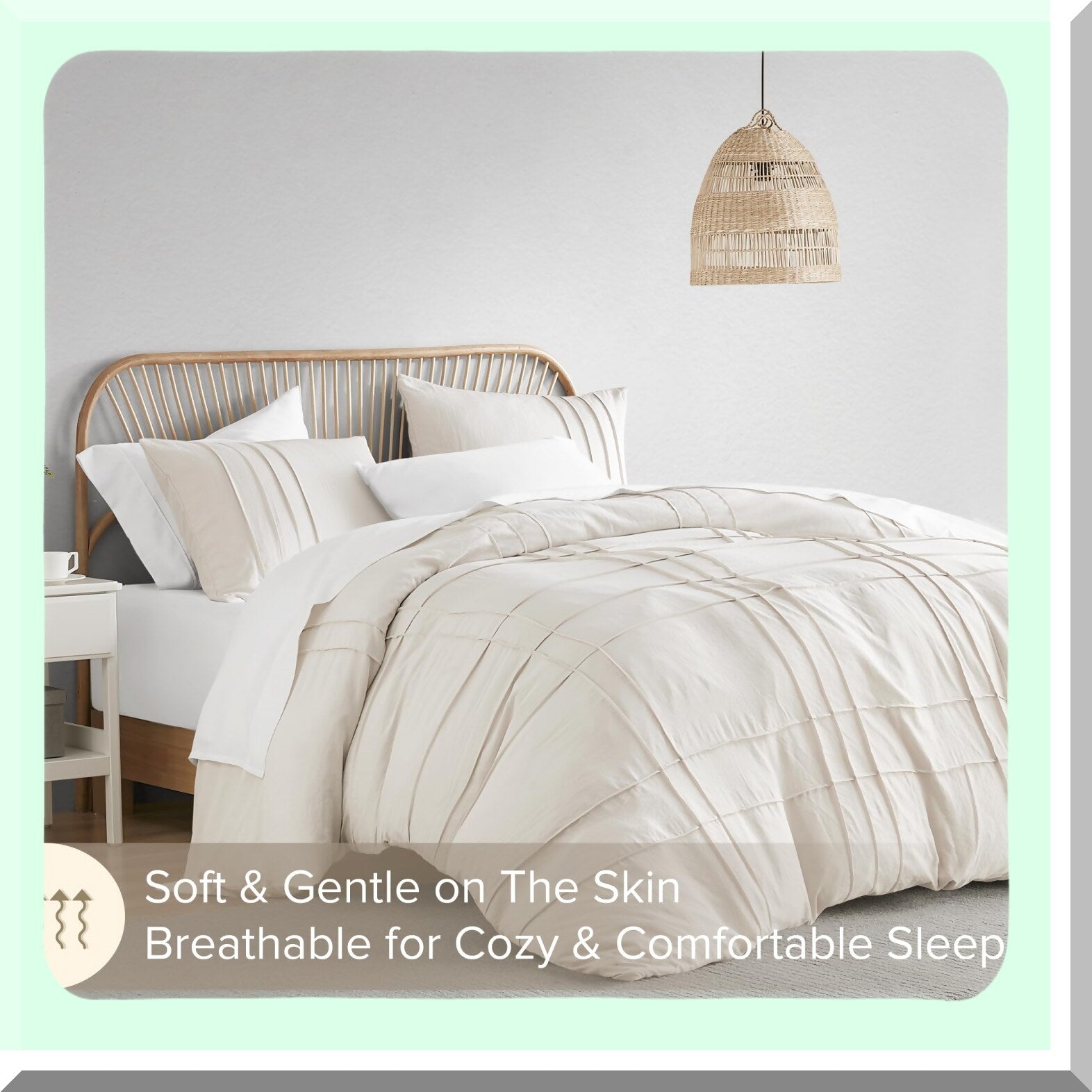 Pintuck Pleated Farmhouse Queen Comforter Set - Soft Cotton-Like Bedding with Lightweight All Season Microfiber, 3 Piece Queen Bed Set with Shams