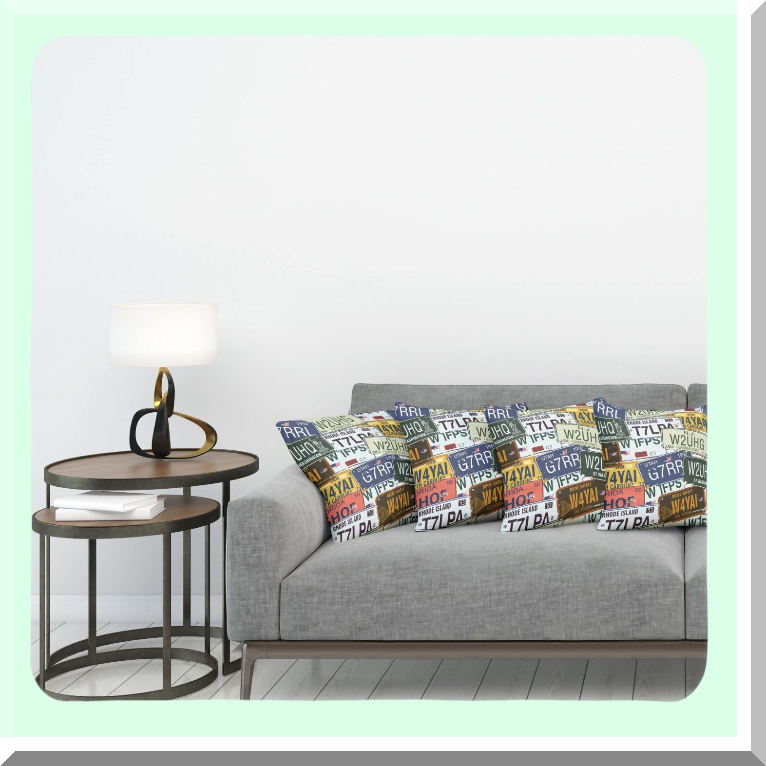 Retro License Plate Decorative Pillow Case Set - Vintage Style Cushion Covers for Couch, Car, Living Room - Pack of 4, Personalized Travel Vacation Theme - 18" Blue Green