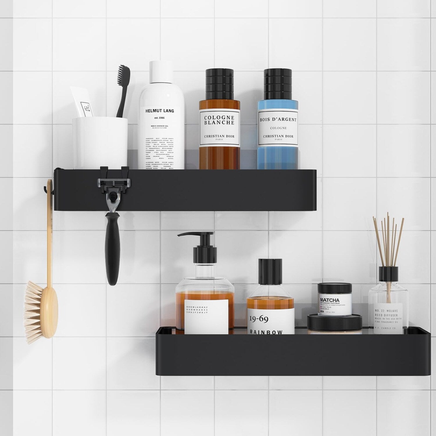 This set includes two large adhesive shower caddies designed for inside the shower. Made from rustproof stainless steel with a thickened coating, these racks are durable, waterproof, and resistant to scratches, ensuring long-term use. The quick drainage design prevents water accumulation, keeping your essentials dry and organized. These extra-large organizers are versatile and can be used in the bathroom, kitchen, or living room to store various items. The strong adhesive tapes provide a secure hold on smooth, solid surfaces such as tiles, tempered glass, or metal, without damaging walls. When needed, the adhesive can be easily removed by heating with a hairdryer for five minutes and peeling off. These drill-free shelves are ideal for maintaining a tidy space and are suitable for those seeking a sturdy, rustproof storage solution that combines convenience with durability.