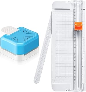This set includes two paper cutters and a 3-in-1 corner rounder punch with three size options: 4 mm, 7 mm, and 10 mm. The portable paper trimmer features an automatic security lock and a side ruler for precise cuts. The corner punch allows for easy rounding of corners on cards and scrapbooking projects. Designed for convenience, it helps create clean, professional-looking edges and rounded corners. Suitable for various paper crafting needs, it offers versatility with multiple cutting options in a compact, easy-to-use design.