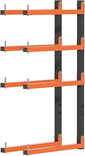 This heavy-duty metal lumber storage rack features a four-level design with a 32-inch width, providing ample space for organizing wood and other materials. Its upgrade folding wall mount design allows for easy installation and space-saving storage. The sturdy construction ensures durability and stability, making it suitable for garage or workshop use. The rack's multiple levels help maximize storage capacity while keeping materials accessible and organized. Its robust metal frame supports heavy loads, making it ideal for storing various sizes of lumber and woodworking supplies. The foldable feature allows the rack to be adjusted or collapsed when not in use, enhancing convenience and flexibility. Designed for durability and practicality, this storage solution helps maintain a tidy workspace and efficiently utilize available space. Its simple installation process and reliable performance make it a practical addition to any workshop or garage for woodworking and storage needs.