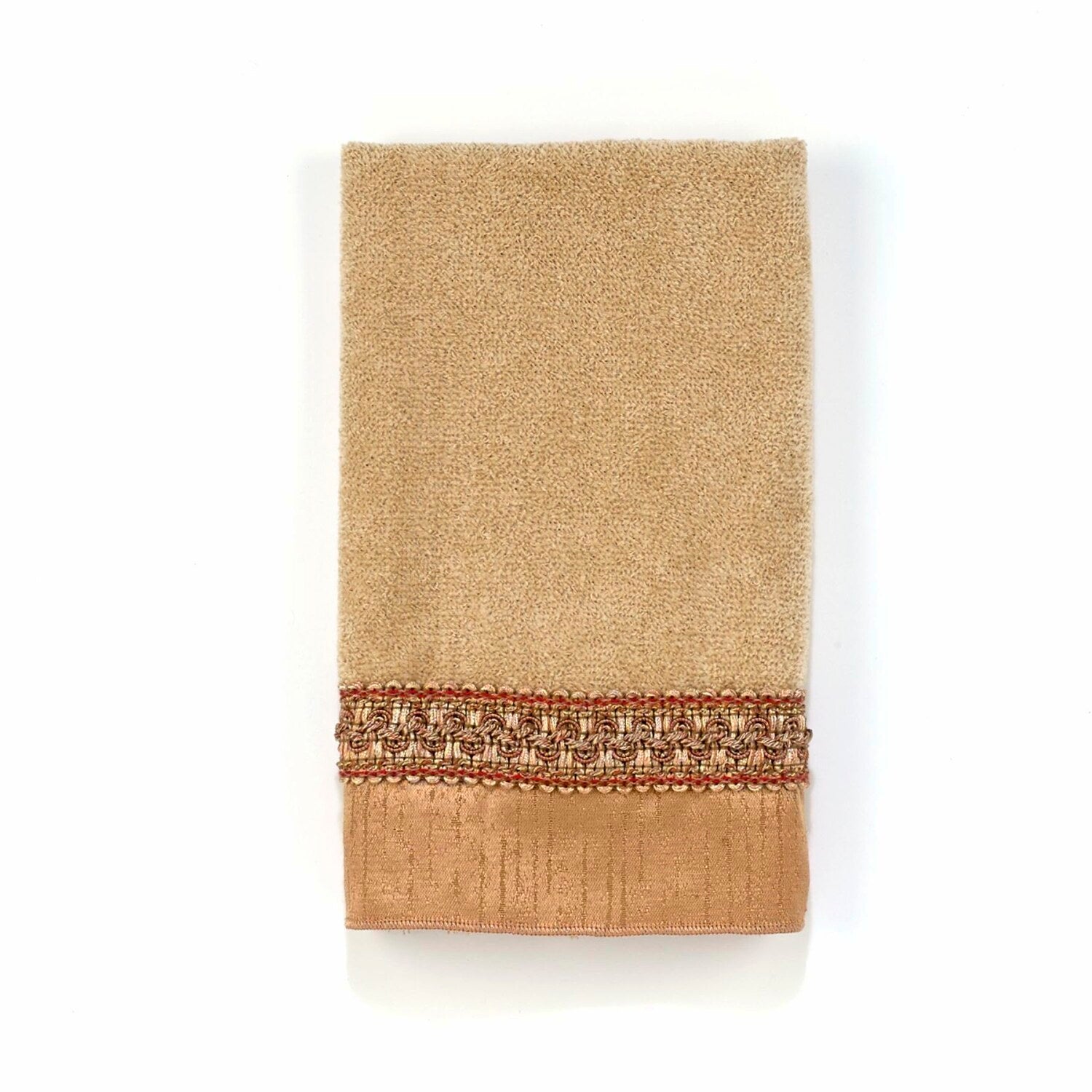 This fingertip towel from the Braided Medallion Collection is crafted from soft, absorbent 100% cotton, excluding embellishments. It features a subtle, tonal jacquard design complemented by a braided detail, adding understated elegance to any bathroom setting. The velour finish enhances its plush feel, making it both functional and stylish. Perfect for quick hand drying, this towel combines practicality with refined design. Its lightweight construction ensures easy handling and quick drying, while the durable cotton material provides long-lasting softness and absorbency. The neutral tone and intricate braided pattern make it a versatile addition to any bathroom decor. Whether used daily or for special occasions, this fingertip towel offers a blend of comfort and sophistication. Its simple yet elegant design makes it suitable for various bathroom styles, providing a touch of refined simplicity. A practical and stylish choice for everyday use.