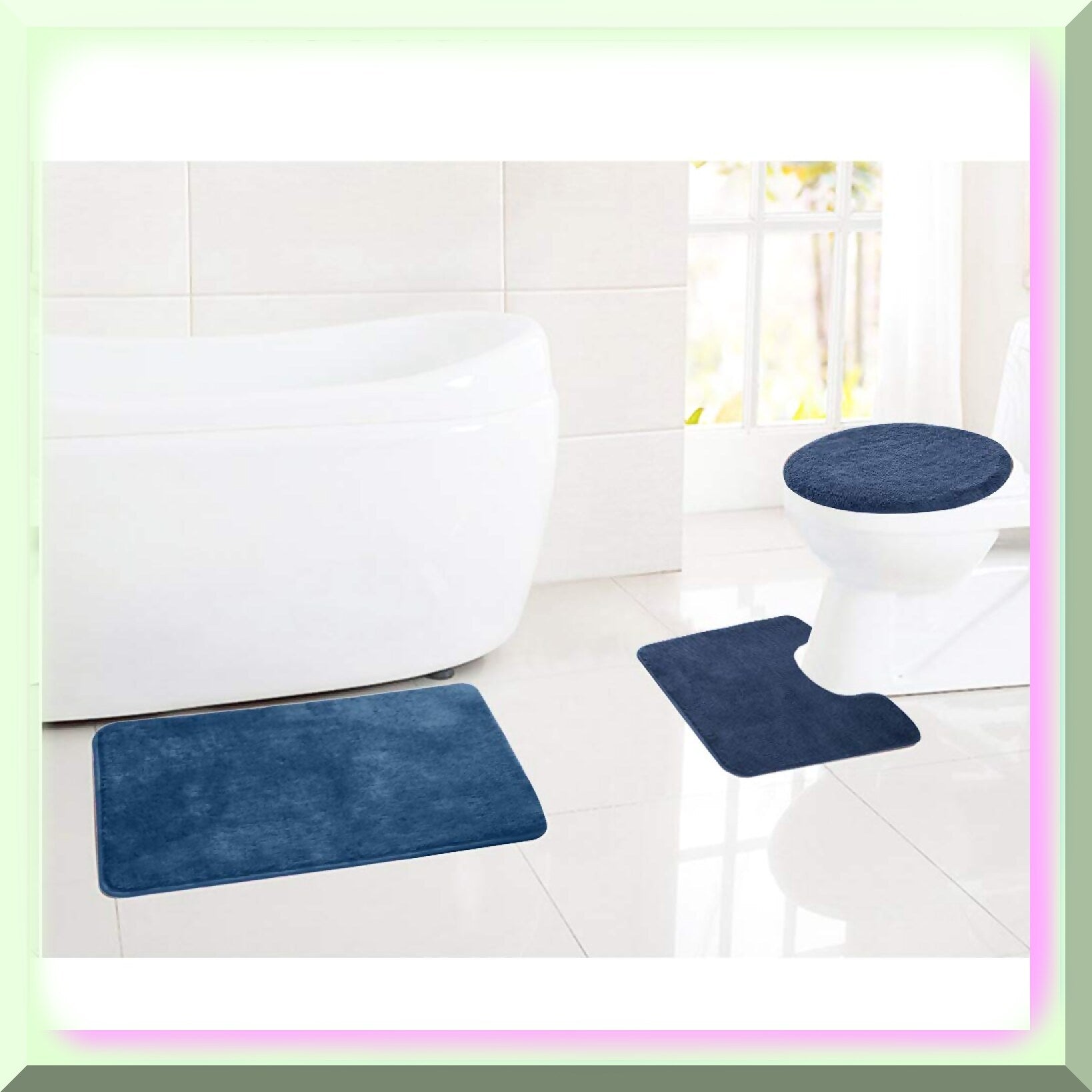 This 3-piece bathroom rugs set combines comfort and luxury with its super soft chenille fabric. Designed for durability, it withstands heavy use and machine washing. The mats quickly absorb water, keeping your bathroom floor dry and slip-free. The anti-skid PVC bottom ensures safety, while the microfiber piles, each 1 inch long, provide extra softness. The set includes a rectangular floor mat measuring 50x80cm, a U-shaped contoured tet mat of 50x50cm, and an oval-shaped lid cover of 47x50cm. Its simple, solid color style complements various bathroom decors, adding a touch of elegance. Easy to clean, these mats are machine washable, making maintenance effortless. Ideal for use in bathrooms, living rooms, kitchens, bedrooms, or guest rooms, this set offers a perfect blend of functionality and aesthetic appeal. Each piece is designed to enhance your space with comfort, safety, and style.