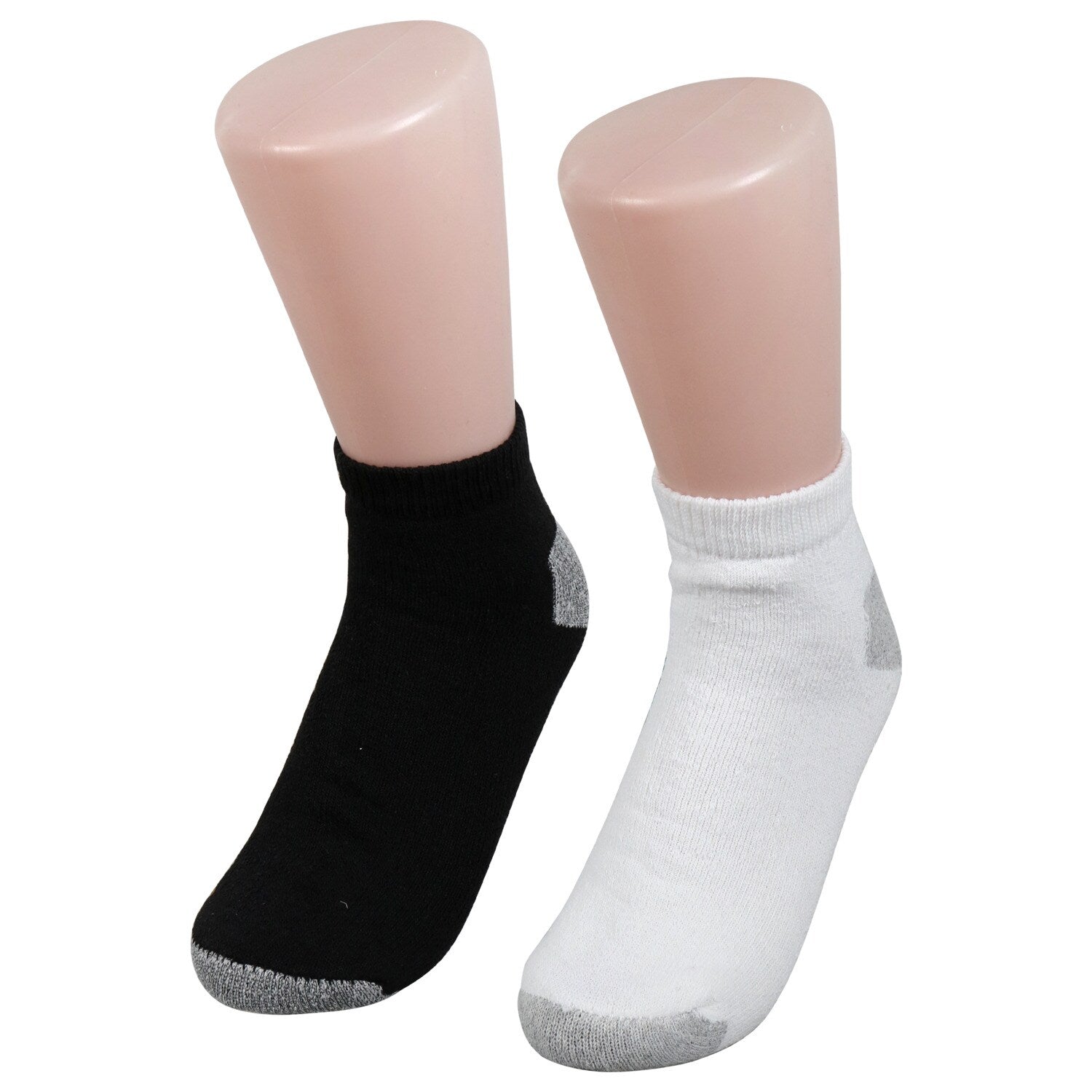 Comes with (Pack of 36).Ladies Size 5-9 Full-Cushion Low-Cut Socks slip on easily and cushion the foot to provide better support and a comfortable wear. They also are non-binding with extra-wide tops and smooth toe seams. Assorted between black and white for everyday use with any style, these socks stay in place no matter how active you get. The blend of 60% cotton, 38% polyester, and 2% spandex provides for better breathability so that your socks stay cool and dry all day long.
