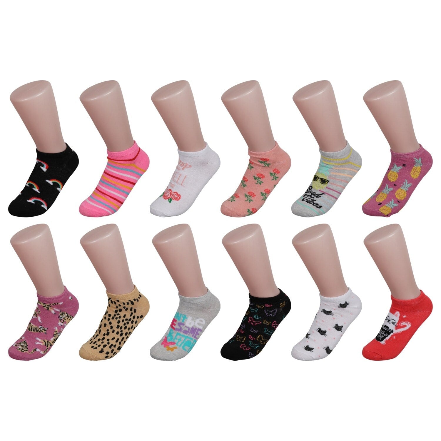 Comes with (Pack of 36). Keep your feet looking cute while staying protected with these adorable low-cut socks! Each pack comes with 2 pairs of socks. With various styles, colors and designs, you can stock up so that you can have a different style for every day of the week. Great for stocking stuffers!
